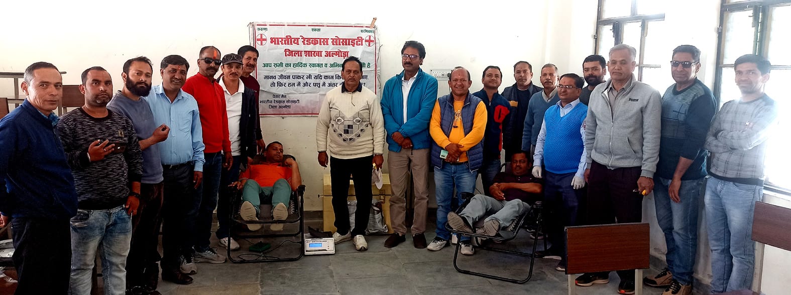 दन्यां-रेडक्रॉस समिति अल्मोड़ा द्वारा दन्यां में रक्तदान शिविर का आयोजन किया गया।शिविर में क्षेत्र के 30 युवाओं ने रक्तदान किया।शिविर में चार दर्जन से अधिक लोगों की आंखों की जांच की गई और उन्हें निश्शुल्क दवाइंया वितरित की गई।शिवर में दस गरीब महिलाओं को कंबल,बाल्टी और साबुन बांटे गए।जिला रेडक्रॉस समिति अल्मोड़ा के तत्वावधान में अटल उत्कृष्ट जीआईसी दन्यां में रक्तदान शिविर का आयोजन किया गया।शिविर में 30 स्वयं सेवकों ने रक्तदान किया।रक्तदान करने वालों में व्यापार मंडल संरक्षक ज्ञान प्रकाश पंत, अध्यक्ष पूरन बिष्ट,सतीश पंत,कैलाश जोशी,ललित पुरी,डीके जोशी,देश दीपक पंत, हरीश मलाड़ा, भुवन भट्ट, बसन्त बल्लभ भट्ट,भाजयुमो के मंडल अध्यक्ष राकेश भट्ट सहित तीस लोगों ने एक एक यूनिट रक्तदान किया।शिविर में दस गरीब महिलाओं को कंबल,बाल्टी और साबुन भी वितरित किए।पूर्व संयुक्त निदेशक और वरिष्ठ नेत्र विशेषज्ञ डा. जेसी दुर्गापाल के नेतृत्व में चार दर्जन से अधिक लोगों की आंखों की जांच की और उन्हें परामर्श और दवाइयां वितरित की गई।शिविर में डा. साही,रेडक्रॉस समिति के जिलाध्यक्ष मनोज सनवाल,वरिष्ठ सामाजिक कार्यकर्ता किशन गुरूरानी सहित रेडक्रॉस के अनेक सदस्य उपस्थित हुए। शिविर केसंचालन में डीके जोशी, प्रधानाचार्य खान उमैर असगर, कैलाश जोशी, ज्ञान प्रकाश पंत पूरन बिष्ट आदि लोगों ने सहयोग प्रदान किया।