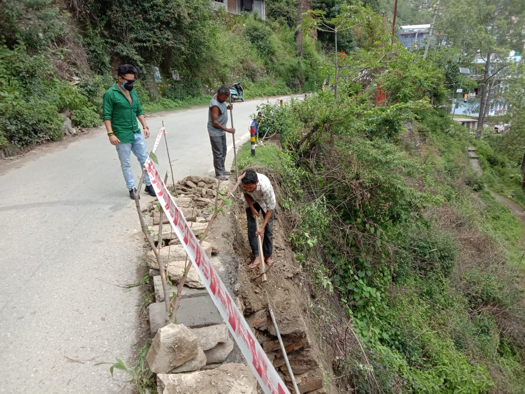 अल्मोड़ा-लक्ष्मेश्वर वार्ड सभासद अमित साह (मोनू )ने बताया कि खुटकुनी भैरव मंदिर लक्ष्मेश्वर के पास टूटी रोड एवं पैराफिट का कार्य आज से शुरू हो गया है।जिसके लिए उन्होंने सभी प्रिंट मीडिया सोशल मीडिया एवं पोर्टल मीडिया कर्मियों का आभार जताया है जिन की खबरों के कारण शीघ्र अति शीघ्र कार्य शुरू होने में उनका योगदान सराहनीय है एवं विभाग से उम्मीद की है कि कार्य को शीघ्र अति शीघ्र पूर्ण मजबूती के साथ करेंगे।नेशनल हाईवे कनिष्ठ अभियंता पूजा बिष्ट ने बताया कि लक्ष्मेश्वर वार्ड सभासद अमित साह (मोनू) द्वारा पूर्व में ही हमें इसकी सूचना दे दी गई थी इस कार्य को करवाने के लिए हम पहले से ही प्रयासरत थे।लेकिन लॉक डाउन के कारण कार्य शुरू नहीं हो रहा था।अब लॉकडाउन में कमी के कारण कार्य शुरू कर दिया है शीघ्र अति शीघ्र कार्य पूर्ण हो जाएगा और लोगों को एवं क्षेत्रवासियों को राहत मिलेगी।