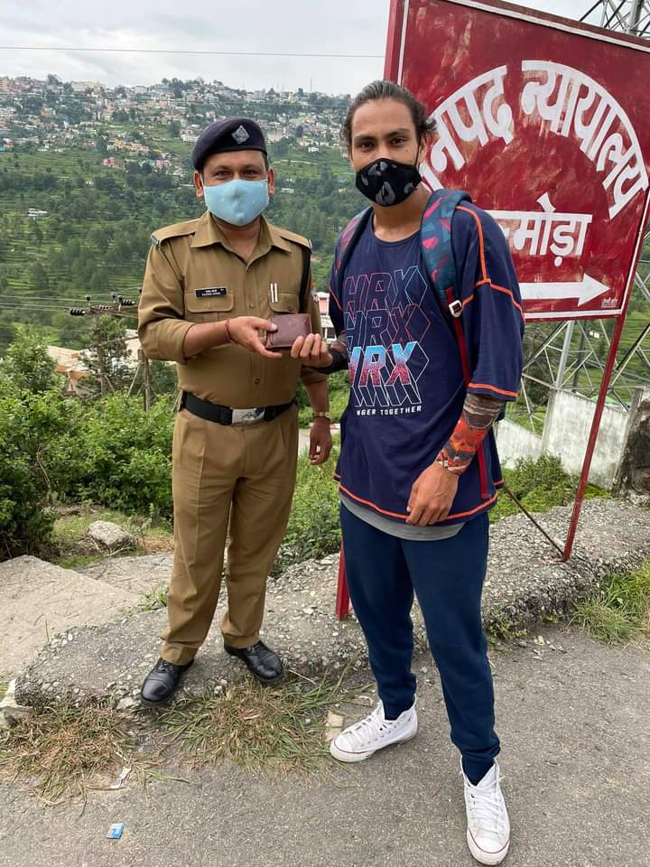 अल्मोड़ा-दिनांक 07.08.2021 को आरक्षी राजेश जोशी अपनी ड्यूटी को जा रहे थे कि पोस्ट आँफिस के पास सड़क पर पड़ा पर्स दिखाई दिया,जब खोलकर देखा तो पर्स में पैसों के अलावा अन्य कई महत्वपूर्ण दस्तावेज थे,नहीं था तो मालिक का नाम पता, तभी उसमें जिम की कोई रशीद मिली,हालांकि अपनी ड्यूटी में पहुंचने में आरक्षी को देर हो सकती थी फिर भी अपनी कर्तव्यनिष्ठता का परिचय देकर उक्त आरक्षी ने तुरन्त जिम जाकर जिम के संचालक को घटना के सम्बन्ध में अवगत कराया तो पर्स अमित बिष्ट नामक युवक का होना पाया गया।जिम संचालक से अमित बिष्ट उपरोक्त का सम्पर्क नम्बर लेकर, उन्हें उनका पर्स सौंपा गया।अपना खोया हुआ पर्स पाकर अमित बिष्ट बहुत प्रसन्न हुए तथा आरक्षी राजेश जोशी व अल्मोड़ा पुलिस का बहुत धन्यवाद व आभार प्रकट किया।