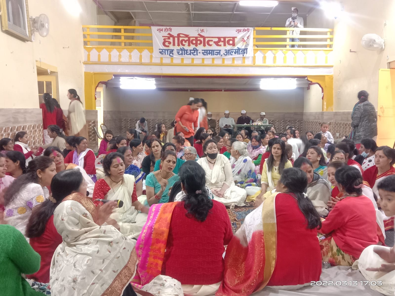 अल्मोड़ा-13 मार्च को कुन्दन लाल साह स्मारक प्रेक्षागृह में साह चौधरी समाज अल्मोड़ा द्वारा विगत वर्ष की भांति इस वर्ष भी महिला होलिकोत्सव का आयोजन किया गया।जिसमें सर्वप्रथम वरिष्ठ महिला संरक्षक श्रीमती रक्षा साह,करूणा साह,सुशीला साह,राधिका साह,पूर्व अध्यक्ष श्याम लाल साह,लक्ष्मी लाल साह,सुन्दर लाल चौधरी,अध्यक्ष प्रभात साह द्वारा संयुक्त रूप से द्वीप प्रज्जवलित किया गया।कार्यक्रम के अन्त में जलपान के साथ उत्सव का समापन हुआ।इस अवसर पर साह चौधरी समाज के अध्यक्ष प्रभात साह,महासचिव उदय राज साह,सहसचिव दीपक साह,पूर्व महासचिव शरद लाल साह,नवीन लाल साह,प्रमोद चौधरी,कुन्दन लाल साह,स्मारक प्रेक्षागृह के संचालक सुदर्शन लाल साह,राजा साह,हर्षवर्धन चौधरी,बी०पी०साह,ललित चौधरी,दिनेश चन्द्र साह,पवन साह,मीडिया प्रभारी हिमांशु साह,संजय साह,अभिषेक साह,डा०इला साह,मुन्नी साह,पूजा साह,भावना साह,किरन साह,विनीता साह,सविता साह,नीमा साह,निर्मला साह,शान्ति साह,सुनीता साह,निर्मला साह,जानकी चौधरी,देवेन्द्र साह,रजत साह,देवाशीष साह,राजेश साह,अभय राज साह,अजय साह आदि उपस्थित रहे।
