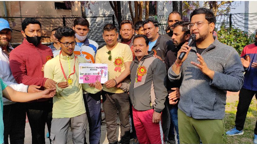 अल्मोड़ा-आज शहीद दिवस के उपलक्ष्य में नशे के खिलाफ मिनी मैराथन का आयोजन किया गया।ये मिनी मैराथन चौघानपाटा से ले कर पुलिस लाइन तक और वापसी चौघानपाटा तक की गयी।ये मैराथन दस किमी की रखी गयी थी।जिसमें प्रथम पुरस्कार पांच हजार रूपये,द्वितीय पुरस्कार तीन हजार रूपये और तृतीय पुरस्कार ग्यारह सौ रूपये रखा गया।प्रथम स्थान में भावेश भट्ट,द्वितीय स्थान में नवनीत शाह टौर तृतीय स्थान। में भवर सिंह रहे।सांत्वना पुरस्कार सुंदर सिंह बोरा, गौरव अधिकारी को मिला।इस आयोजन में सभी खेल प्रेमी सहित राजेंद्र बिष्ट,सुशील साह,भैरव गोस्वामी,किशन लाल,नीरज बोरा,
