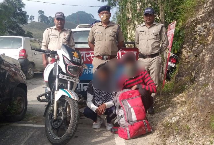 अल्मोड़ा-वरिष्ठ पुलिस अधीक्षक अल्मोड़ा द्वारा सभी थाना/ चौकी प्रभारियों को अपने अपने क्षेत्र तथा जनपद की सीमाओं में बने बैरियरों में अवैध रूप से गाँजा/चरस व अन्य नशीली पदार्थो की तस्करी कर रहे तस्करों पर कठोर कार्यवाही करने के निर्देश दिये गये है।इसी क्रम में दिनांक 8.09.2021 को उ०नि० सुशील कुमार थानाध्यक्ष सल्ट द्वारा दौराने चैकिंग मरचूला बैरियर के पास एक अपाचे बाईक वाहन संख्या यूके08 पीए 7074 में बैठे दो व्यक्तियों के संदिग्ध प्रतीत होने पर नारायण सिंह पुत्र राजे सिंह निवासी जयराम सल्ट भगत सिंह पुत्र स्व०चन्दन सिंह निवासी नोगांव सल्ट अल्मोड़ा को चैक करने पर उपरोक्त के कब्जे से 5.248 किग्रा० अवैध गांजा कीमत करीब 26000.00 रु बरामद कर NDPS एक्ट के अन्तर्गत अभियोग पंजीकृत कर आवश्यक कार्यवाही की गयी।उक्त सम्बन्ध में उ० नि० सुशील कुमार थानाध्यक्ष सल्ट ने बताया की पूछताछ में बताया कि वह गांजा को बेचने हेतु सराईखेत से रामनगर ले जाने के फिराक में थे,पकड़ में आने पर उचित कार्यवाही की गयी है।पुलिस टीम में उ० नि० सुशील कुमार थानाध्यक्ष सल्ट,उ०नि० अवनीश कुमार,का० दीपक सामन्त,का० संजु सिंह शामिल रहे।