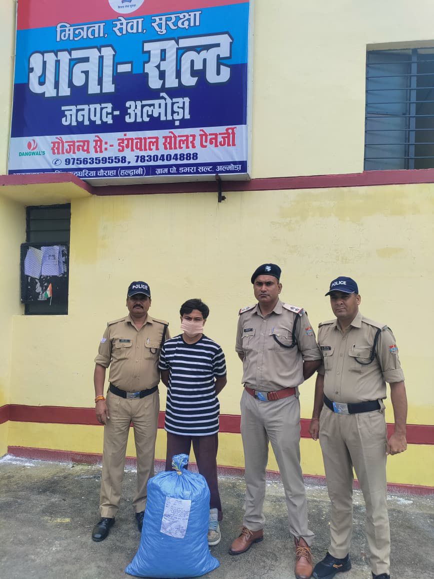 अल्मोड़ा-देवेन्द्र पींचा वरिष्ठ पुलिस अधीक्षक अल्मोड़ा द्वारा नशे के विरुद्ध जीरो टाँलरेन्स व नशामुक्त देवभूमि की नीति अपनाकर सभी थाना/ चौकी प्रभारियों को अपने-अपने क्षेत्र सघन चैकिंग कर अवैध रूप से गाँजा/चरस व अन्य नशीली पदार्थो की तस्करी कर रहे तस्करों पर कठोर कार्यवाही करने के निर्देश दिये गये है।अपर पुलिस अधीक्षक हरबन्स सिंह व सीओ रानीखेत विमल प्रसाद के पर्यवेक्षण में उपनिरीक्षक कश्मीर सिंह थानाध्यक्ष सल्ट के नेतृत्व में पुलिस टीम द्वारा दिनांक 23.08.2025 के रात्रि को मरचूला बैरियर के पास चैकिंग की जा रही थी।दौराने चैकिंग धूमाकोट वाली रोड से एक मैटैलिक सिल्वर कलर कार आती दिखाई दी।जिसमें बैठा व्यक्ति संदिग्ध प्रतीत होने पर कार संख्या यूके 18 पी 3836 को चैक करने पर कार की डिग्गी में नीले-आसमानी रंग का प्लास्टिक के कट्टा में रखा 15.985 किग्रा अवैध गांजा कीमत करीब 3,99,625 बरामद कर NDPS एक्ट के अन्तर्गत अभियोग पंजीकृत कर आवश्यक कार्यवाही की गयी।