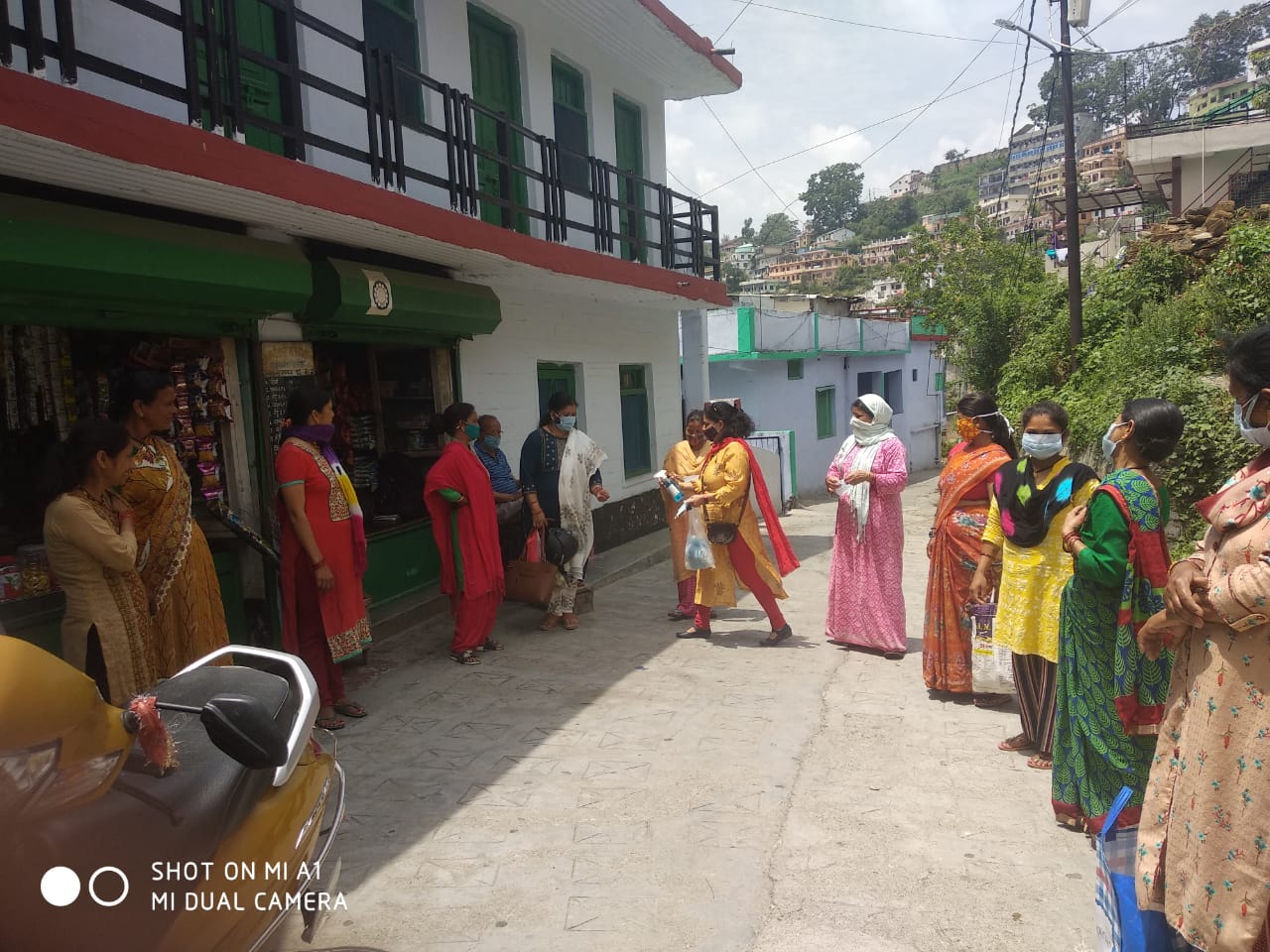 अल्मोड़ा-सामाजिक कार्यकर्ता गीता मेहरा के द्वारा आज महिलाओं को साथ लेकर वार्ड बालेश्वर में कोरोना महामारी को देखते हुए घर घर जाकर सैनेटाइजर एवं मास्क वितरित किये गये।श्रीमती मेहरा के द्वारा सभी महिलाओं को कोविड से अपने व अपने परिवार के बचाव करने की अपील के साथ ही नियमित मास्क पहनने तथा आवश्यक होने पर ही घर से निकलने की बात कही गयी।विदित हो कि श्रीमती गीता मेहरा काफी लम्बे समय से सामाजिक सेवा में लगी हुई हैं।विगत वर्ष भी कोविडकाल में उनके द्वारा जरूरतमंदों की मदद की गयी थी।उनके साथ सैनेटाइजर और मास्क वितरण कार्यक्रम में गीता पाण्डज,राधा राजपूत,नीमा नगरकोटी, कमला पाण्डज,दीपा भण्डारी आदि महिलाएं उपस्थित रही।