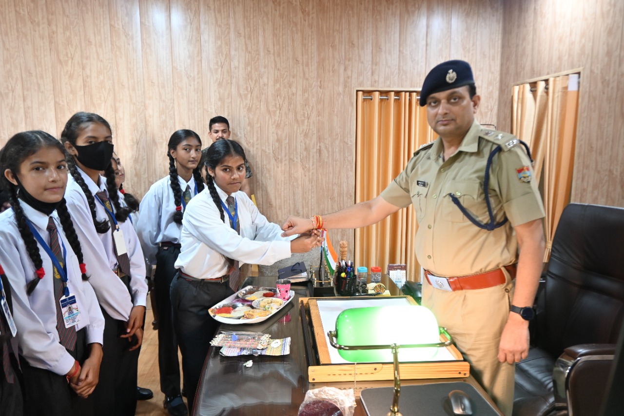 अल्मोड़ा-आज दिनांक 10/08/2022 को स्प्रिंग डेल्स स्कूल अल्मोड़ा की प्रधानाचार्या श्रीमती ज्योत्सना सोहनलाल के निर्देशन में स्प्रिंग डेल्स स्कूल की अध्यापिका सुश्री ज्योत्सना सोनकर के नेतृत्व में छात्राओं द्वारा पुलिस कार्यालय अल्मोड़ा आकर नशे के विरुद्ध एस एस पी द्वारा उठाये गये कड़े कदमो की सराहना की गई।छात्राओं ने प्रदीप कुमार राय वरिष्ठ पुलिस अधीक्षक की दीर्घायु की कामना करते हुए कलाई में बाँधी रक्षा की डोर बाँधी।एस० एस० पी०ने सुरक्षा का वचन देते हुए छात्राओं को जागरुक करते हुए कहा कि आपको सुरक्षा सम्बन्धी कभी भी कोई भी समस्या आये तो पुलिस के हेल्प लाईन नंबर 112,1090 में या उत्तराखंड पुलिस एप के गौरा शक्ति में शिकायत कर सहायता प्राप्त कर सकते है।इस दौरान स्प्रिंग डेल्स की छात्रायें स्नेहा,हया,कामाक्षी,अर्चना, विनीता,रेनू,मान्यता,रिया,मनीषा, मानसी आदि मौजूद रही।
