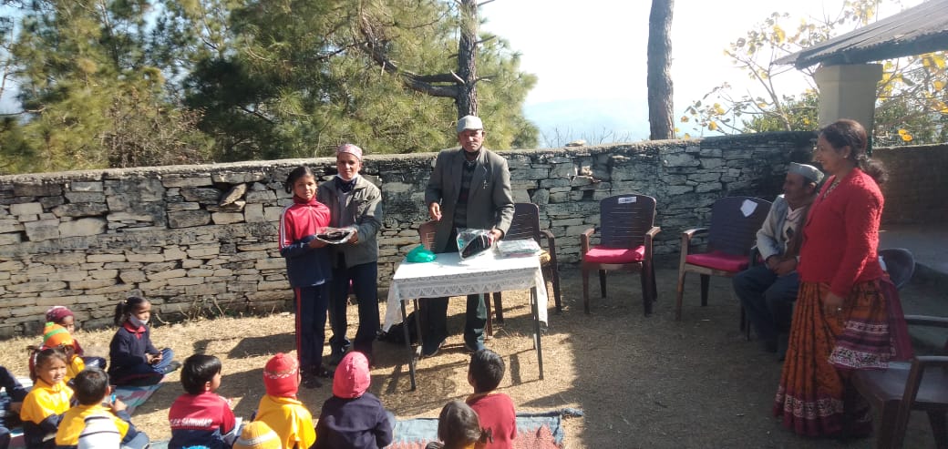अल्मोड़ा-राजकीय प्राथमिक विद्यालय सैमधार ज्योली मे गौ सेवा ट्रष्ट द्वारा जन शिक्षण संस्थान के मनोज सनवाल के सहयोग से बच्चों को शीत लहर से बचाने हेतु स्वेटर वितरित किये गये । कार्यक्रम का संचालन करते हुवे पूर्व प्रधानाचार्य ज्योली हेम चन्द्र जोशी ने सैमधार प्राथमिक विद्यालय के अध्यापिकाओ द्वारा बिद्यालय में की गई सजावट अध्ययन,अध्यापन के स्तर को सुधारने के लिये प्रशंसा की।सभा को ज्योली इण्टर कालेज के नव नियुक्त प्रधानाचार्य गणेश रावत,ज्योली इण्टर कालेज के प्रधानाचार्य गणेश रावत,सैमधार प्राईमरी विद्यालय की प्रधानाध्यापिका ललिता पाण्डे ने भी सम्बोधित किया।इस अवसर पर गौ सेवा न्यास के सचिव दयाकृष्ण काण्डपाल तथा संरक्षक चन्द्रमणि ने विद्यालय में एक नेत्रहीन दिव्यांग बच्चे के माता पिता से आग्रह किया कि वे करण तिवारी नाम के इस बच्चे को दृष्ठिबाधित स्कूल मे पढाये।यदि वे चाहे तो पढाई हेतु इस बच्चे को नेत्र बाधित स्कूल गौलापार हल्द्वानी भेजने हेतु ट्रष्ट के सहयोगी विचार कर सकते है।विद्यालय की प्रधानाध्यापिका ललिता पाण्डे ने गौ सेवा ट्रष्ट,जन शिक्षण संस्थान व सहयोगियों का आभार व्यक्त किया।