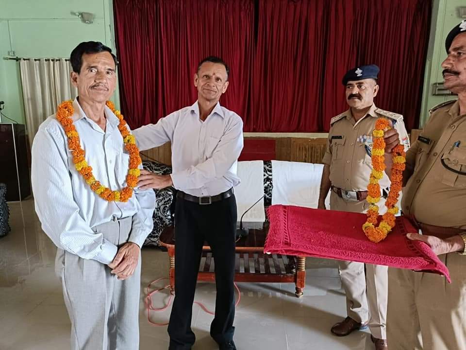 पिथौरागढ़-दिनाँक 30.04.2022 को संदेश वाहक संचार शाखा पिथौरागढ़ पूरन सिंह के पुलिस विभाग में 39 वर्ष,11 माह,25 दिवस की नियमित सराहनीय सेवा कर अधिवर्षता सेवानिवृत्ति के अवसर पर तथा चतुर्थ श्रेणी कर्मी कालू सिंह के पुलिस विभाग में 32 वर्ष,29 दिवस की नियमित सराहनीय सेवा कर ऐच्छिक सेवानिवृत्ति के अवसर पर पुलिस अधीक्षक पिथौरागढ़ लोकेश्वर सिंह के निर्देशन में पुलिस लाईन पिथौरागढ़ में विदाई समारोह का आयोजन किया गया।जिसमें अपर पुलिस अधीक्षक दूरसंचार बी०बी० तिवारी व पुलिस उपाधीक्षक पिथौरागढ़ महेश चन्द्र जोशी द्वारा सेवानिवृत्त कर्मियों का फूल माला पहनाकर स्वागत किया गया तथा उन्हें प्रशस्ति पत्र व स्मृति चिन्ह् भेंट करते हुए पुलिस परिवार की ओर से उनके सेवानिवृत्त जीवन के सुखद शांतिमयी एवं भविष्य में अच्छे स्वास्थ्य व सुखद पारिवारिक जीवन की कामना करते हुये भावभीनी विदाई दी गई एवं उनके द्वारा पुलिस विभाग को दी गई सेवाओ एवं इनकी कर्तव्य परायणता व ईमानदारी की सराहना की गई।इसके अतिरिक्त उक्त विदाई समारोह के अवसर पर प्रतिसार निरीक्षक पुलिस लाईन पिथौरागढ़ नरेन्द्र कुमार आर्या,प्रतिसार निरीक्षक दूरसंचार प्रदीप कुमार,लाईन मेजर माधो सिंह सहित पुलिस लाईन/पुलिस कार्यालय/संचार शाखा/ एस०डी०आर०एफ०/ फायर के अन्य अधिकारी/कर्म०गण मौजूद रहे।