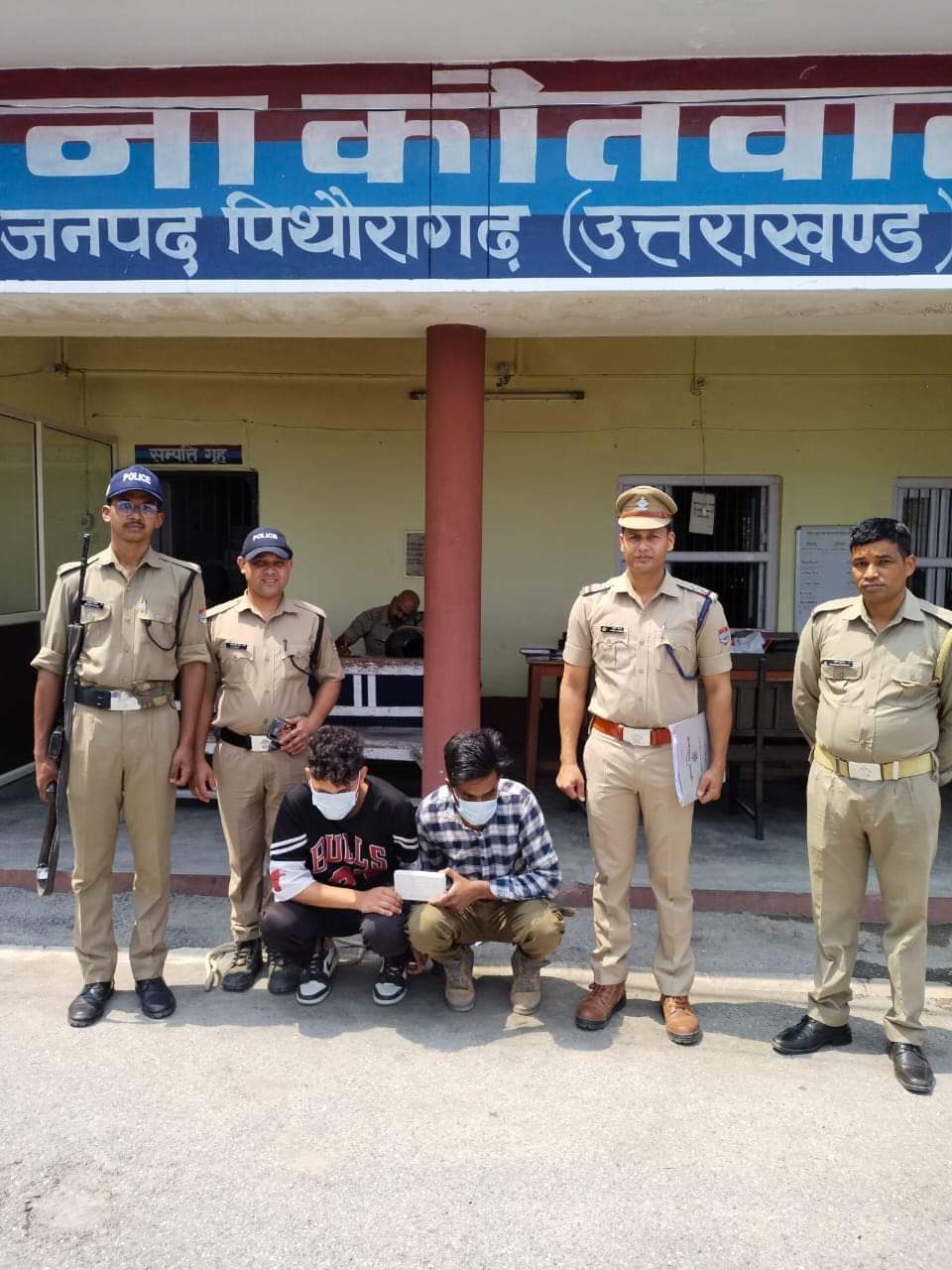 शपिथौरागढ़-पुलिस अधीक्षक पिथौरागढ़ लोकेश्वर सिंह के आदेशानुसार क्षेत्राधिकारी पिथौरागढ महेश चन्द्र जोशी एवं क्षेत्राधिकारी धारचूला विनोद कुमार थापा पुलिस उपाधीक्षक ऑपरेशन सुमित पाण्डे के निर्देशन में जनपद पुलिस द्वारा चरस, स्मैक व अन्य नशीले पदार्थों की तस्करी/बिक्री करने वालों पर लगातार सतर्क दृष्टि रखते हुए कड़ी कार्रवाई की जा रही है।जिस क्रम में दिनांक 14.05.2022 को चौकी घाट बैरियर में चैकिंग के दौरान चम्पावत की ओर से आ रहे वाहन संख्या UK05D-2308 (XUV) 300 कार को चैक करने पर वाहन के अन्दर से 5.7 ग्राम स्मैक बरामद की गयी,जिस पर अभियुक्तगण विशाल सुकोटी पुत्र दिनेश कुमार निवासी टकाना कालोनी पिथौरागढ़ उम्र 24 वर्ष,यश सामन्त पुत्र गिरीराज सामन्त निवासी विण उम्र 23 वर्ष को गिरफ्तार कर उनके विरूद्ध कोतवाली पिथौरागढ़ में धारा 8/21/60 NDPS ACT के अन्तर्गत अभियोग पंजीकृत किया गया।तस्करी में प्रयुक्त वाहन को भी सीज किया गया।अग्रिम वैधानिक कार्यवाही की जा रही है।पुलिस टीम में उ०नि० अनिल कुमार प्रभारी चौकी घाट,उ०नि०संजय सिंह कोतवाली पिथौरागढ़,का० मदन मोहन,का० संजय राम,का० भूपेन्द्र टोलिया शामिल रहे।