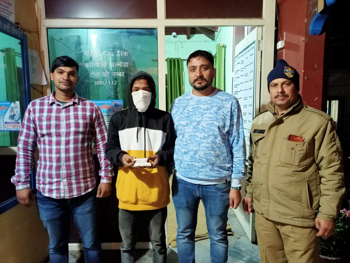 अल्मोड़ा-प्रदीप कुमार राय एसएसपी अल्मोड़ा ने युवाओं एवं स्कूली छात्र-छात्राओं को नशे का शिकार होने से बचाने के लिए जनपद में मादक पदार्थों की तस्करी करने वाले नशे के सौदागरों पर सतर्क दृष्टि रखकर कड़ी कार्यवाही किये जाने हेतु जनपद के सभी सीओ/थाना प्रभारियों एवं एसओजी/एएनटीएफ टीम को सख्त निर्देश दिये गये है।दिनांक 17.10.2022 को सुश्री ओशीन जोशी, सीओ आँपरेशन के नेतृत्व में एसओजी/एएनटीएफ अल्मोड़ा की सटीक सूचना पर कोतवाली अल्मोड़ा पुलिस एवं जनपद एसओजी की संयुक्त टीम द्वारा बेस तिराहा अल्मोड़ा के पास चेकिंग के दौरान 01 युवक जो संदिग्ध प्रतीत हो रहा था,तलाशी लेने पर युवक के कब्जे से 08.32 ग्राम स्मैक कीमत लगभग 83,200 रुपए व एक इलैक्ट्रानिक तराजू बरामद होने पर गिरफ्तार करते हुए कोतवाली अल्मोड़ा में एनडीपीएस एक्ट में अभियोग पंजीकृत कर आवश्यक कार्यवाही की गई है।एसओजी प्रभारी सुनील धानिक द्वारा बताया गया कि गिरफ्तार युवक रुद्रपुर से स्मैक ला रहा था,छोटी-छोटी पुड़िया बनाकर युवाओं को बेचकर नशे के जाल में फंसाने की फिराक में था,जो चेकिंग के दौरान पकड़ा गया।गिरफ्तार युवक की पहचान जलज धामी उम्र 24 वर्ष पुत्र चन्दन सिंह धामी,निवासी सरकार की आली थाना व जिला अल्मोड़ा के रूप में हुई है।बरामदगी में 08.32 ग्राम स्मैक व 01इलैक्ट्रानिक तराजू बरामद हुआ है जिसकी कीमत लगभग 83,200 रुपए है।पुलिस टीम में उ०नि० कृष्ण कुमार प्रभारी चौकी बेस कोतवाली अल्मोड़ा,कानि० गिरीश चन्द्र कोतवाली अल्मोड़ा,कानि० वीरेन्द्र सिंह बिष्ट एसओजी/एएनटीएफ,कानि/ राकेश भट्ट एसओजी/एएनटीएफ शामिल रहे।