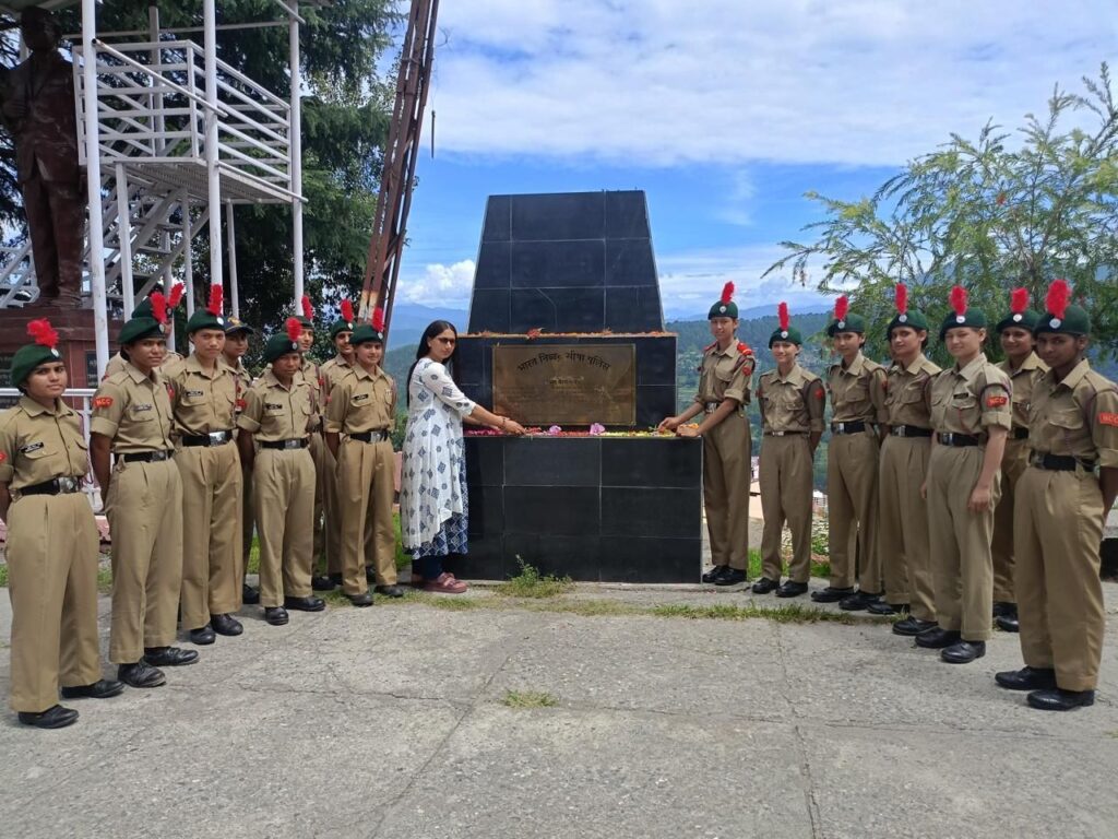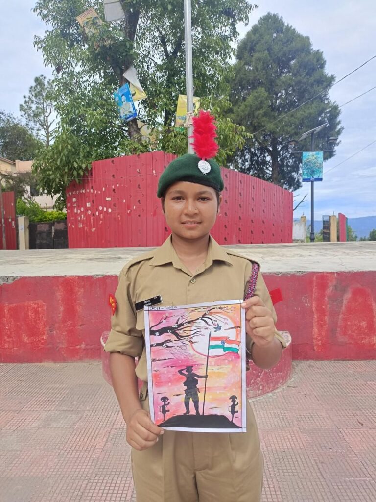 अल्मोड़ा-सोबन सिंह जीना विश्वविद्यालय अल्मोड़ा 24 यूके बालिका वाहिनी एन सी सी की लेफ्टिनेंट (डॉ)ममता पंत के निर्देशन में 26/7/2025 को कारगिल विजय दिवस के अवसर पर परिसर अल्मोड़ा में स्थित शहीद स्मारक एवं शौर्य दीवार में पुष्प अर्पण किए गए तथा परिसर में चित्रकला प्रतियोगिता का भी आयोजन किया गया।जिसमें एन सी सी की कैडेट्स के द्वारा भाग लिया गया।इस प्रतियोगिता के अंतर्गत 45 कैडेट्स द्वारा प्रतिभाग किया गया। जिसमें से प्रथम स्थान पर कैडेट सोनिया,द्वितीय स्थान पर कैडेट पायल तिवारी तथा तृतीय स्थान पर कैडेट प्राची गोस्वामी रहे।प्रतियोगिता के पश्चात कैडेट्स को संबोधित करते हुए लेफ्टिनेंट (डॉ) ममता पंत ने कहा कि देश की सेवा एवं रक्षा हमारा सबसे बड़ा धर्म है।हमें अपने सैनिकों के त्याग और बलिदान को हमेशा याद रखना चाहिए साथ ही उनके संघर्ष से प्रेरणा लेनी चाहिए और अपने देश के लिए हमेशा कुछ अच्छा करने का संकल्प लेना चाहिए।इस अवसर पर अंडर ऑफिसर बरखा मुस्यूनी,सार्जेंट निधि मेहता,सार्जेंट आकांक्षा पिलख्वाल उपस्थित रहे।