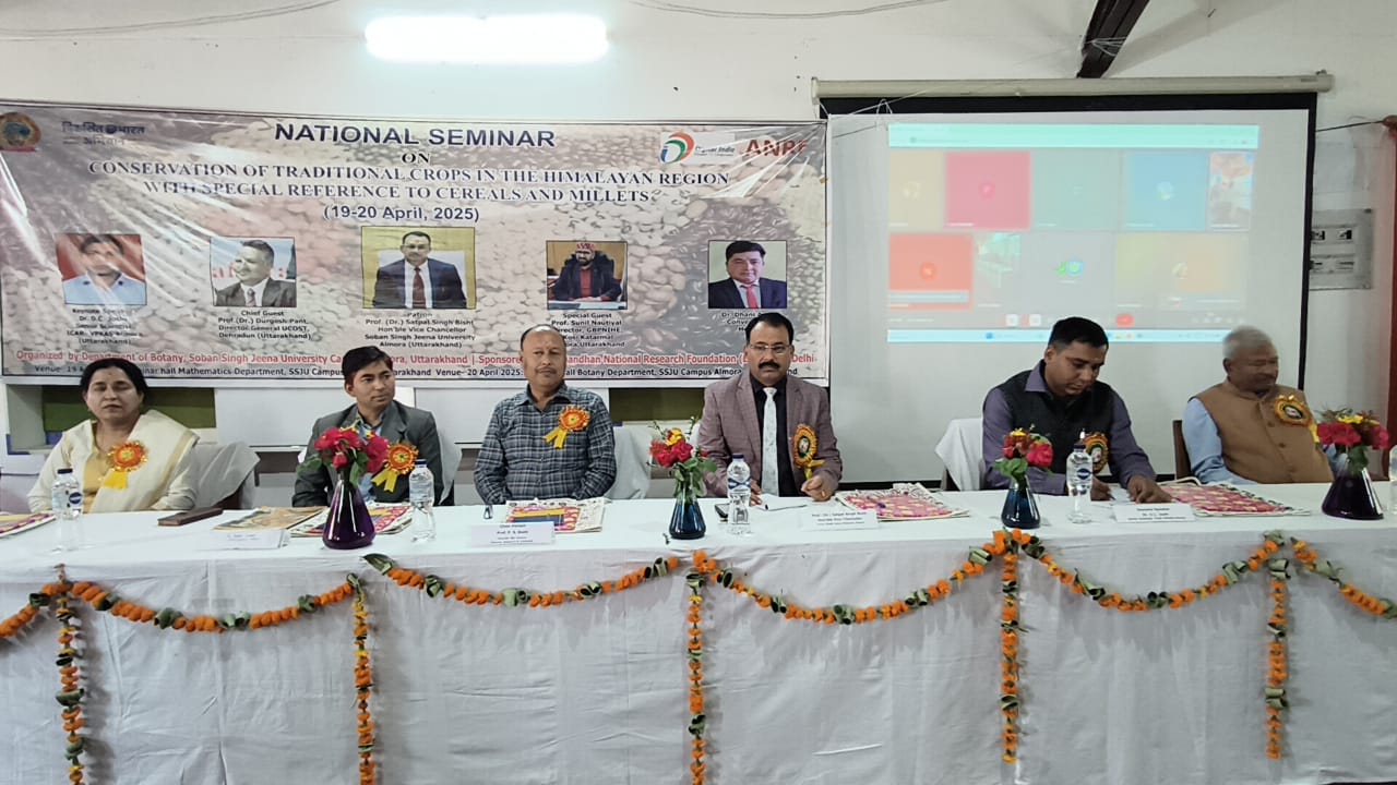 अल्मोड़ा-वनस्पति विज्ञान विभाग एसएसजे परिसर द्वारा राष्ट्रीय अनुसंधान फाउंडेशन (डीएसटी) नई दिल्ली के सहयोग से शनिवार को कंजर्वेशन ऑफ ट्रेडिशनल क्रॉप्स इन हिमालयन रीजन विद स्पेशल रेफरेंस टू सेरेल्स एंड मिलेट्स विषय पर एक दिवसीय राष्ट्रीय संगोष्ठी का आयोजन किया गया।संगोष्ठी में पारंपरिक फसलों और मोटे अनाजों के संरक्षण,उनके पोषण मूल्य,आर्थिक महत्व और बदलते पर्यावरणीय परिदृश्य में उनकी भूमिका पर गहन विमर्श किया गया।कार्यक्रम में ऑनलाइन माध्यम से जुड़े मुख्य अतिथि प्रो. दुर्गेश पंत ने कहा कि झंगोरा,मडुवा जैसे मोटे अनाज इस क्षेत्र की सांस्कृतिक धरोहर हैं और इनमें संपूर्ण पोषण तत्व मौजूद हैं।उन्होंने इन फसलों के संरक्षण,शोध व नवाचार की आवश्यकता पर बल देते हुए कहा कि विश्वविद्यालय की ओर से प्राप्त संस्तुतियों को धरातल पर उतारा जाएगा।कुलपति सतपाल सिंह बिष्ट ने कहा कि पारंपरिक फसलों पर अस्तित्व का संकट मंडरा रहा है और बाजार उपलब्ध न होने से किसानों को इनसे लाभ नहीं मिल पा रहा।उन्होंने फसलों के उत्पादन के साथ-साथ उनकी प्रोसेसिंग और पैकेजिंग पर जोर देने की बात कही ताकि उन्हें व्यावसायिक रूप से मजबूत आधार मिल सके।सांख्यिकी अधिकारी अशोक कुमार ने खेती और ग्रामीण क्षेत्रों से हो रहे पलायन पर चिंता जताते हुए कहा कि शिक्षित युवाओं को खेती से जोड़ना समय की मांग है।उन्होंने मोटे अनाज की चिकित्सकीय उपयोगिता पर भी प्रकाश डाला।संगोष्ठी में तकनीकी सत्रों का भी आयोजन हुआ,जिनमें डॉ. डी.सी. जोशी, डॉ. पंकज तिवारी,डॉ. श्रीकर पंत,डॉ. नेहा पांडे सहित विभिन्न विशेषज्ञों ने मिलेट्स,पोषण, जलवायु-अनुकूल खेती, राइजोस्फीयर अध्ययन,खाद्य सुरक्षा,सतत विकास, समुदाय-आधारित वनीकरण जैसे विषयों पर विचार प्रस्तुत किए।संगोष्ठी के संचालन में नेहा जोशी और दीक्षा खुल्बे ने भूमिका निभाई।आयोजन में डॉ. सुभाष चंद्रा,डॉ. मजूलता उपाध्याय,डॉ. रवींद्र कुमार, रवींद्रनाथ पाठक,प्रमोद भट्ट, के.के. कपकोटी,डॉ. जोया साह, डॉ. भावना पांडे,प्रो. शेखर चंद्र जोशी,डॉ. दीपक, डॉ. नंदन सिंह बिष्ट,प्रो. इला साह सहित अनेक शिक्षक,शोधार्थी,छात्र और क्षेत्रीय वैज्ञानिकों की सहभागिता रही।