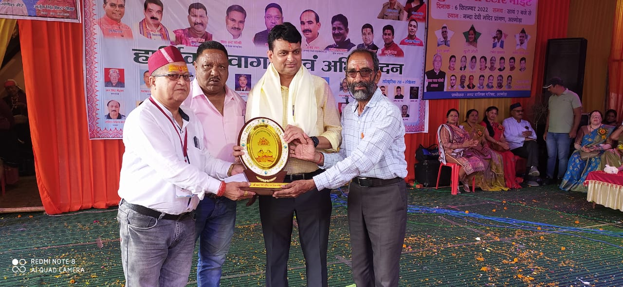 अल्मोड़ा-मां नंदा देवी मंदिर समिति द्वारा दिनांक 06/09/2022 मां नंदा देवी मेला कार्यक्रम में प्रदीप कुमार राय एसएसपी अल्मोड़ा को मुख्य अतिथि के रुप आमन्त्रित कर शॉल व स्मृति चिन्ह से सम्मानित किया गया साथ ही महिला कल्याण की अध्यक्षा श्रीमती रीता दुर्गापाल द्वारा एसएसपी अल्मोड़ा की धर्मपत्नी श्रीमती रितु राय को कुमाऊं की संस्कृति की पहचान पिछोड़ा ओढ़ाकर सम्मानित किया गया।एसएसपी अल्मोड़ा द्वारा समाज को खासतौर पर युवाओं को नशे के दलदल से बचाने के लिए नशे के विरुद्ध चलाये जा रहे विभिन्न जागरुकता कार्यक्रमों की सराहना की गई।एसएसपी अल्मोड़ा द्वारा कार्यक्रम के दौरान जनता को नशे के दुष्परिणामों के प्रति आगाह करते हुए कहा कि नशा व्यक्ति के साथ-साथ उसके पूरे परिवार को अस्त व्यस्त कर देता है।हम सभी को नशे के खिलाफ मुहिम छेड़नी होगी,जिससे हम समाज को नशे के दलदल मे फंसने से बचा सकते है और मुख्यमंत्री उत्तराखंड के ड्रग्स फ्री देवभूमि मिशन 2025 के लक्ष्य को हासिल करने में अपना महत्वपूर्ण योगदान दे सकते हैं।मां नंदा देवी के जयकारे लगाकर मेले में आए श्रद्धालुओं को नशे के विरुद्ध रण करने वाले जोश से भर दिया।