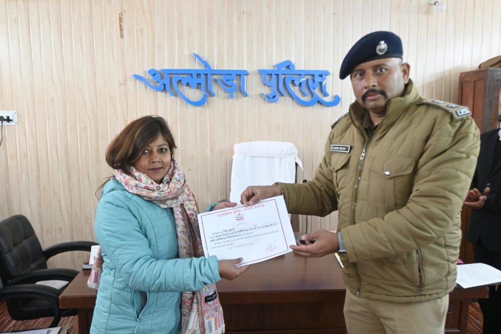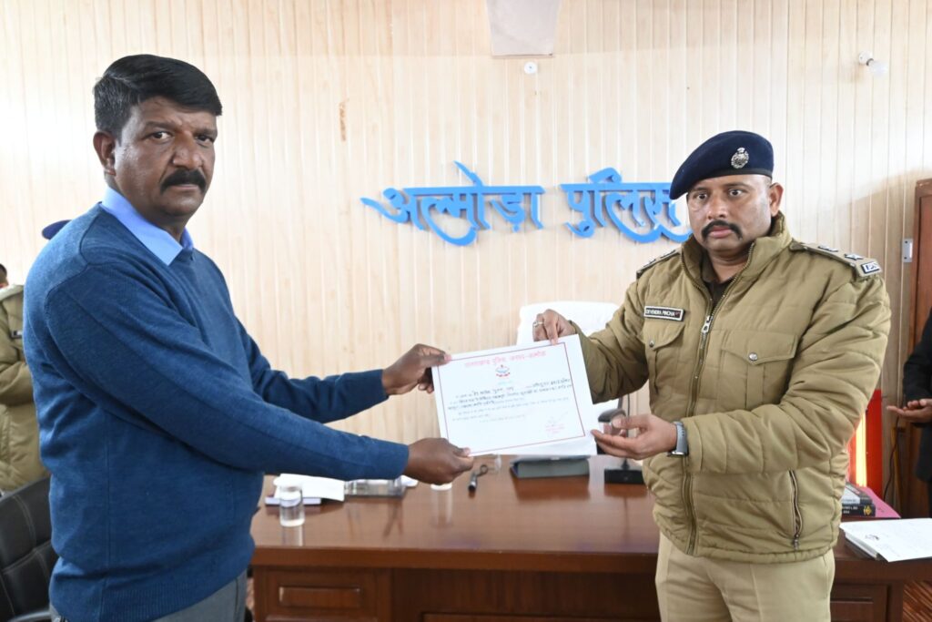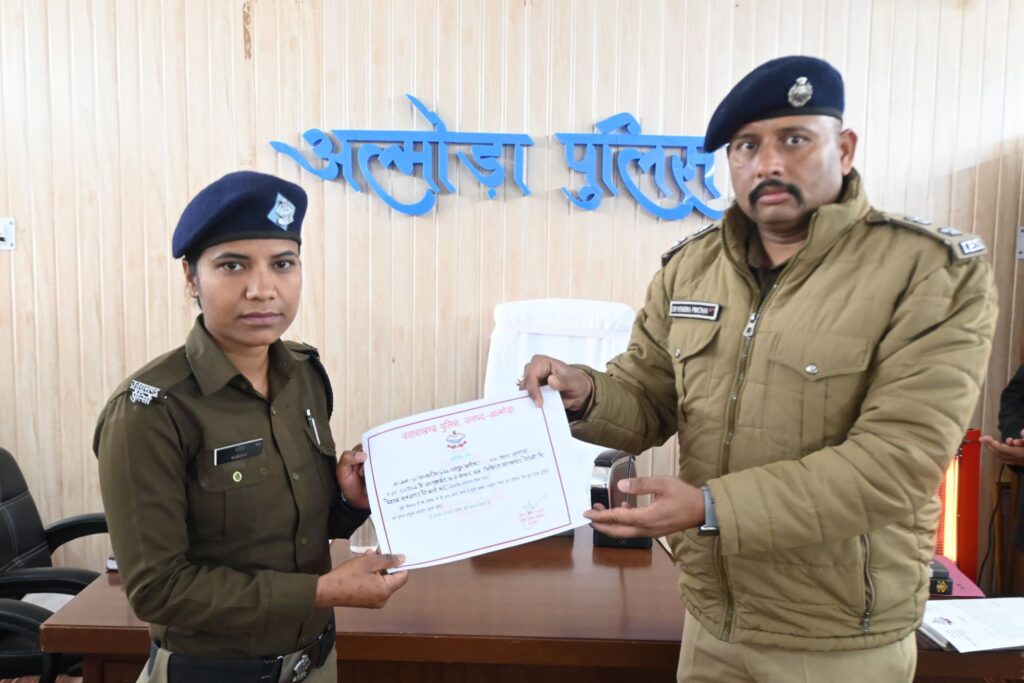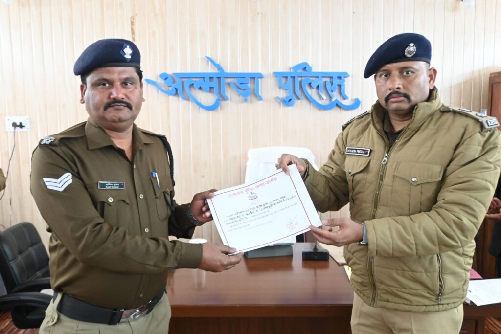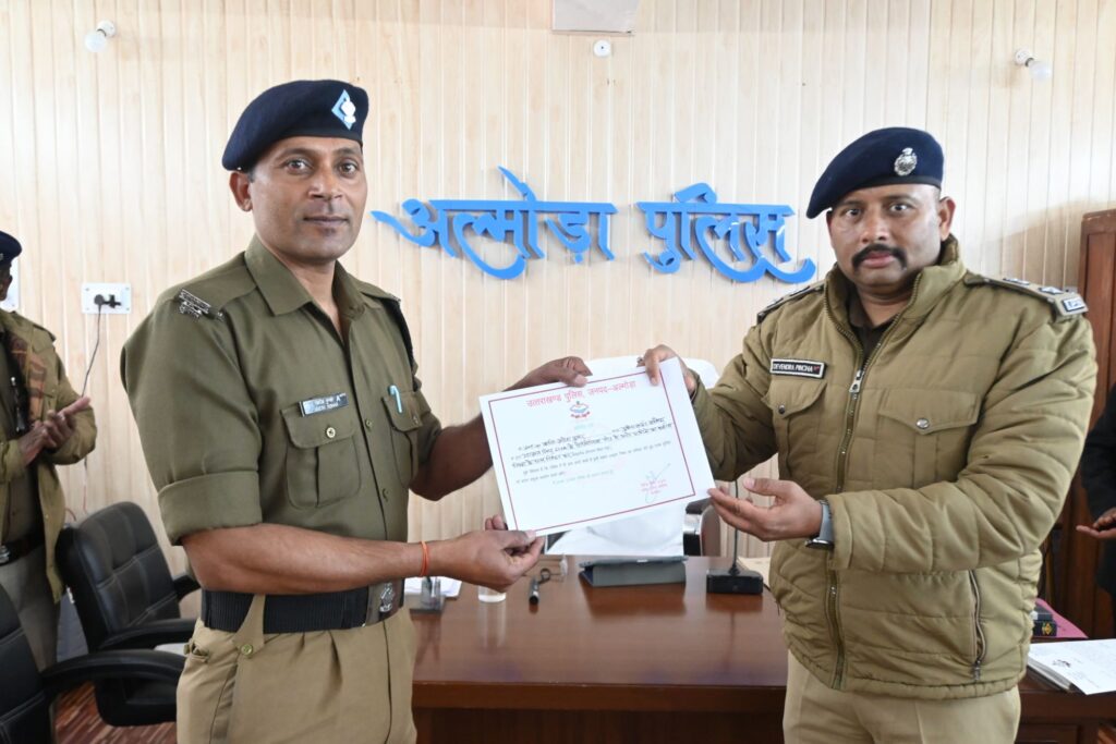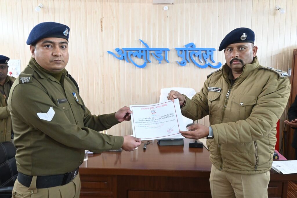 इसके अतिरिक्त वरिष्ठ पुलिस अधीक्षक द्वारा जनपद के राजपत्रित अधिकारी सीओ अल्मोड़ा विमल प्रसाद,सीओ संचार राजीव टम्टा व सीएफओ अल्मोड़ा नरेन्द्र सिंह कुवंर को सौपे गये दायित्वों का कुशलतापूर्वक निर्वहन करने व अधीनस्थों के कार्यों का बेहतर पर्यवेक्षण करने पर उक्त अधिकारियों की प्रशंसा करते हुए प्रशस्ति पत्र से सम्मानित किया गया।इस अवसर पर सीओ अल्मोड़ा विमल प्रसाद,सीओ संचार राजीव कुमार टम्टा,प्रभारी ज्येष्ठ अभियोजन अधिकारी बिंदेश्वरी प्रसाद टम्टा,प्रतिसार निरीक्षक विजय विक्रम, प्रभारी निरीक्षक कोतवाली अल्मोड़ा जगदीश चन्द्र देउपा, प्रभारी निरीक्षक कोतवाली रानीखेत हिमांशु पंत, निरीक्षक एलआईयू कमल पाठक निरीक्षक दूरसंचार उमाशंकर पाण्डे,एफएसओ महेश चन्द्र, निरीक्षक यातायात दरबान सिंह, निरीक्षक एसडीआरएफ अर्जुन सिंह बिष्ट सहित जनपद के सभी थाना/एसओजी/एएनटीएफ एवं समस्त शाखा प्रभारी व अन्य कर्मचारी गण मौजूद रहे।