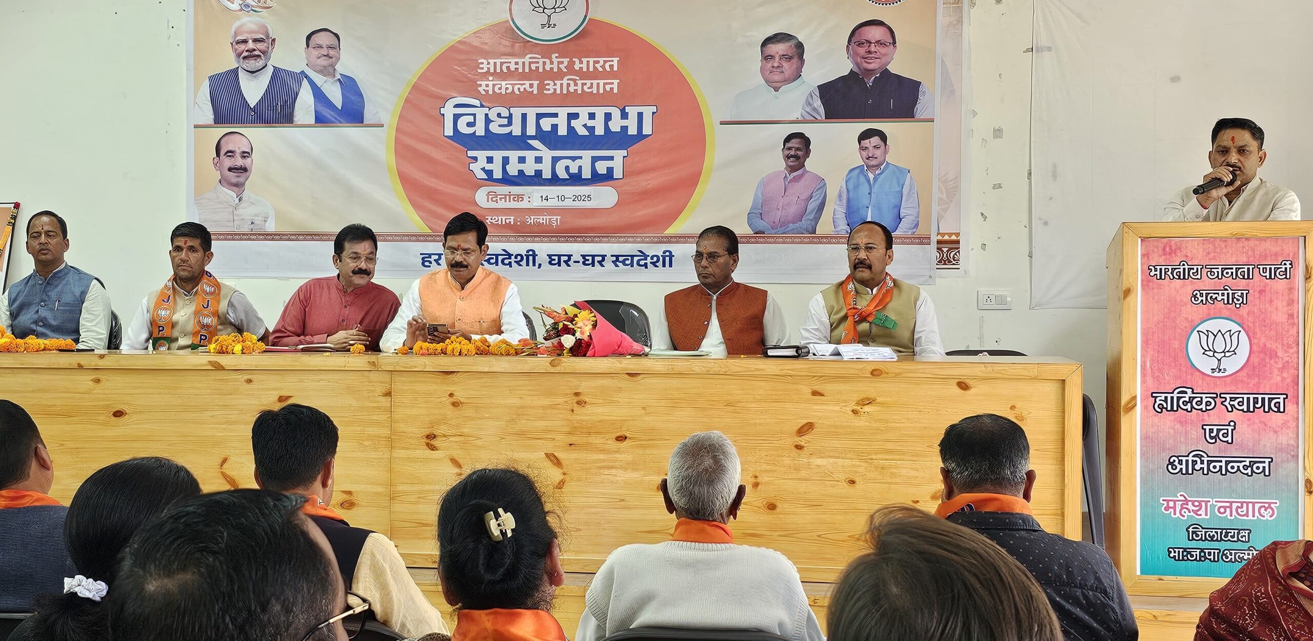 अल्मोड़ा-भारतीय जनता पार्टी अल्मोड़ा विधानसभा के तत्वावधान में मंगलवार को भाजपा कार्यालय में ‘आत्मनिर्भर भारत संकल्प अभियान–विधानसभा सम्मेलन’ आयोजित किया गया। कार्यक्रम की अध्यक्षता महेश नयाल ने की। उन्होंने कहा कि महामंत्री के मार्गदर्शन में अल्मोड़ा जनपद राजनीतिक दृष्टि से और अधिक सशक्त होगा तथा विकास की नई योजनाओं से क्षेत्र को लाभ मिलेगा। कार्यक्रम का संचालन जिला महामंत्री दर्शन रावत और प्रकाश भट्ट ने संयुक्त रूप से किया। संयोजक ललित लटवाल ने आत्मनिर्भर भारत अभियान के आगामी कार्यक्रमों की विस्तृत रूपरेखा प्रस्तुत करते हुए बताया कि व्यापारी प्रकोष्ठ और स्थानीय जनप्रतिनिधियों के सहयोग से दुकानदारों, उद्यमियों और पेशेवर वर्ग के बीच स्वदेशी उत्पादों के प्रचार-प्रसार हेतु संवाद अभियान चलाया जाएगा। अभियान के तहत स्वदेशी उत्पादों का संकल्प पत्र भरवाने, प्रमाण पत्र वितरण, स्टार्टअप कम्युनिटी प्रोजेक्ट में मेंटरशिप अभियान, स्वदेशी संकल्प सेमिनार (1 से 15 नवंबर), कॉलेज स्तर पर प्रतियोगिताएं, आत्मनिर्भर भारत कॉलेज एंबेसडर योजना तथा जिला स्तरीय स्वदेशी मेला (16 से 30 नवंबर) जैसे कार्यक्रम आयोजित किए जाएंगे। मुख्य वक्ता प्रदेश महामंत्री कुंदन परिहार ने अपने संबोधन में कहा कि ‘हर घर स्वदेशी, घर-घर स्वदेशी’ के नारे को अपनाते हुए हर नागरिक को त्योहारी सीजन में स्वदेशी उत्पादों को प्राथमिकता देनी चाहिए। उन्होंने कहा कि भारत की आत्मनिर्भरता केवल आर्थिक नहीं, बल्कि सांस्कृतिक और वैचारिक भी होनी चाहिए। प्रधानमंत्री नरेंद्र मोदी के नेतृत्व में देश 2047 तक विकसित राष्ट्र बनने की दिशा में तेजी से आगे बढ़ रहा है। परिहार ने कहा कि स्वदेशी ही आत्मनिर्भर भारत का मूल मंत्र है—’तंत्र भी स्वदेशी हो, मंत्र भी स्वदेशी हो, और भाव भी स्वदेशी हो।’ कार्यक्रम में पूर्व विधायक कैलाश शर्मा, पूर्व विधानसभा उपाध्यक्ष रघुनाथ सिंह चौहान, महापौर अजय वर्मा, कार्यक्रम संयोजक ललित लटवाल और नगर अध्यक्ष विनीत बिष्ट सहित दुग्ध संघ अध्यक्ष गिरीश खोलिया, पूर्व जिलाध्यक्ष रवि रौतेला, गोविंद पिलख्वाल, कुंदन लटवाल, मनोज जोशी, सुनील बिष्ट, संदीप श्रीवास्तव, संजय डालाकोटी, नरेंद्र आगरी, मनीष जोशी, मदन बिष्ट, प्रकाश बिष्ट, सौरभ वर्मा, गोविंद मटेला, रणजीत सिंह भंडारी, लता बोरा, राजीव राज गुरुरानी, आशा बिष्ट, मीना भैसोड़ा, मीरा मिश्रा, देवेंद्र भट्ट, अर्जुन बिष्ट, देवाशीष नेगी सहित अनेक भाजपा कार्यकर्ता मौजूद रहे।