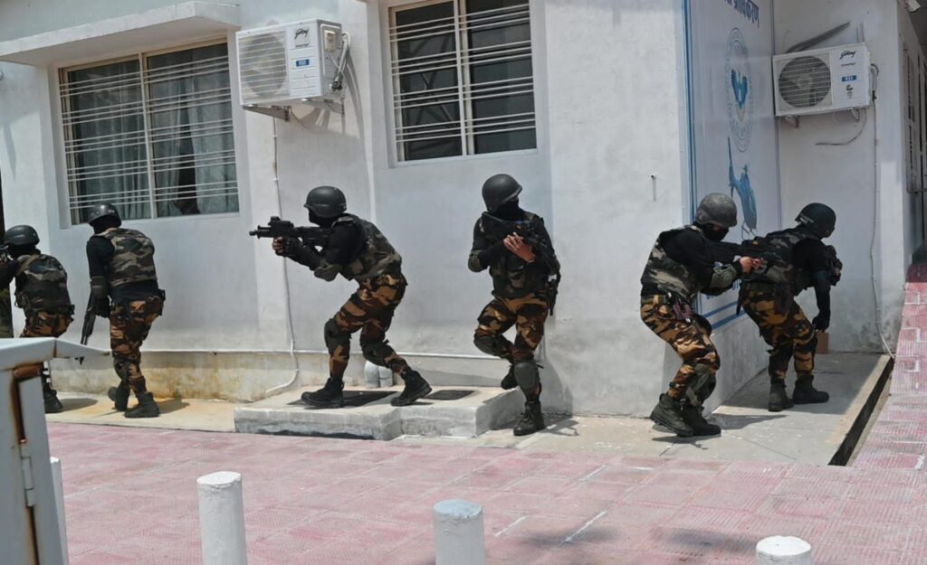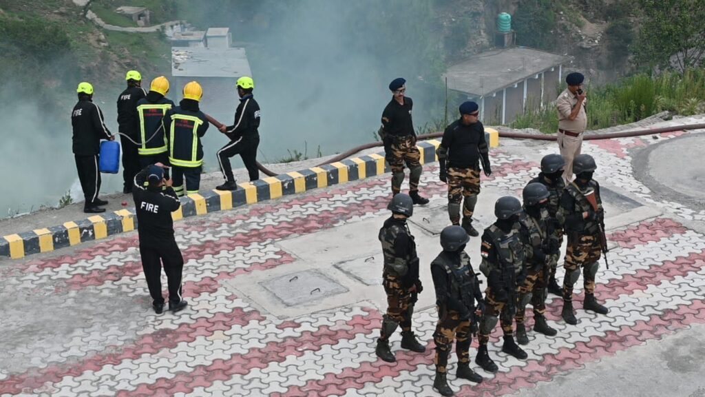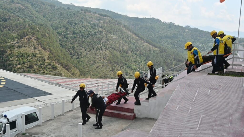 अल्मोड़ा-देवेन्द्र पींचा एसएसपी अल्मोड़ा के निर्देशन में जनपद अल्मोड़ा के टाटिक हेलीपैड में आतंकवाद मॉक ड्रिल का आयोजन किया गया।इस मॉक ड्रिल का उद्देश्य आपात स्थिति में सुरक्षा एजेंसिंयों की तत्परता और समन्वय का परीक्षण करना था।मॉक ड्रिल में पुलिस,एसडीआरएफ,अग्निशमन विभाग,एटीएस,क्यूआरटी, आपदा,सूचना व चिकित्सा विभाग,विद्युत विभाग,पेयजल निगम,जल संस्थान,जिलापूर्ति विभागों द्वारा प्रतिभाग किया गया।इस मॉक ड्रिल में टाटिक हेलीपैड गार्द कमाण्डर द्वारा पुलिस कन्ट्रोल रुम अल्मोड़ा को सूचना दी गयी कि अराइवल कक्ष में लगभग 4 संदिग्धों द्वारा 4 लोगों को बन्धक बना लिया गया है और यह घटना आतंकवादी गतिविधि प्रतीत हो रही है।जिस पर पुलिस कन्ट्रोल रुम द्वारा जनपद पुलिस, एसडीआरएफ,अग्निशमन विभाग,एटीएस,क्यूआरटी, आपदा और सूचना विभाग को इस घटना की सूचना दी गयी जिस पर टीमों द्वारा त्वरित कार्यवाही करते हुए घटनास्थल पर पहुंचकर रेस्क्यू ऑपरेशन शुरु किया किया गया।एटीएस टीम द्वारा ऑपरेशन को सफतापूर्वक अजांम देते हुए अराइवल कक्ष में लोगों को बन्धक बनाने वाले चारों आतंकवादियों को मार गिराया। बन्धक किये गये लोगों को सुरक्षित रेस्क्यू किया गया जिसमें एक बन्धक व्यक्ति गंभीर घायल था जिसे एम्बूलेन्स के माध्यम से उपचार हेतु बेस अस्पताल भेजा गया।बम डिस्पोजल टीम द्वारा एरिया की चेकिंग कर सुनिश्चित किया गया कि किसी प्रकार की कोई संदिग्ध व विस्फोटक पदार्थ नहीं है।मॉक ड्रिल के पश्चात् उदयशंकर नृत्य अकादमी में एक समीक्षा बैठक बुलायी गयी।मॉक ड्रिल के दौरान सीएमओ डॉ आर सी पंत,एसडीएम सदर संजय कुमार,सीओ अल्मोड़ा गोपाल दत्त जोशी,सीओ दूरसंचार राजीव टम्टा,प्रतिसार निरीक्षक पुलिस लाइन अल्मोड़ा विजय विक्रम,निरीक्षक अभिसूचना मनोज भारद्वाज,प्रभारी यातायात अल्मोड़ा दरबान सिंह मेहता,एफएसओ महेश चन्द्र, डीडीएमओ विनीत पाल,सहित विभिन्न विभागों के अधि0/कर्म0गण मौजूद रहे।