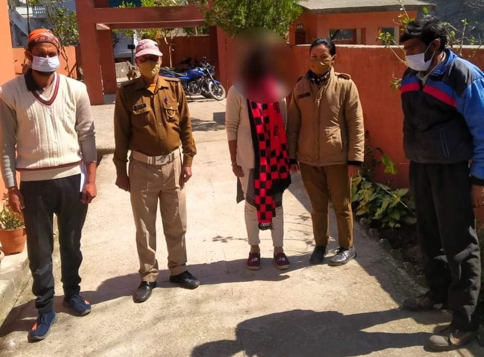 पिथौरागढ़-दिनाँक 4.03.2022 को झूलाघाट निवासी एक महिला के परिजनों द्वारा उक्त महिला के दिनांक- 3.03.2022 को घर का सामान लाने हेतु पिथौरागढ़ बाजार जाने तथा सायं तक वापस घर नहीं आने व काफी ढूंढखोज /तलाश करने पर भी पता नहीं चल पाने के सम्बन्ध में थाना झूलाघाट में तहरीर दी गई।तहरीर के आधार पर थाना झूलाघाट में उक्त महिला की गुमशुदगी दर्ज की गयी। पुलिस अधीक्षक पिथौरागढ़ लोकेश्वर सिंह के आदेशानुसार उपरोक्त गुमशुदा की तलाश हेतु थानाध्यक्ष झूलाघाट, संतोष तिवारी के नेतृत्व में एक टीम गठित की गई,जिस पर पुलिस टीम द्वारा त्वरित कार्यवाही करते हुए एस०ओ०जी० व सर्विलांस सैल की मदद से गुमशुदा के मिलने के सभी सम्भावित स्थानों पर सघन चैकिंग/जानकारी करते हुए उक्त गुमशुदा को गुमशुदगी दर्ज होने के चंद घण्टों के भीतर ही पिथौरागढ़ से सकुशल बरामद कर लिया गया है।महिला द्वारा अपनी मर्जी से पिथौरागढ़ में रुकने तथा खुद के साथ कोई अपराध कारित नहीं होना बताया गया।महिला को सकुशल उसके परिजनों के सुपुर्द किया गया तथा परिजनों द्वारा पुलिस टीम की त्वरित कार्यवाही की प्रशंसा करते हुए उनका आभार व्यक्त किया गया।पुलिस टीम में थानाध्यक्ष झूलाघाट संतोष तिवारी,का०रवीन्द्र नाथ,का० बलवन्त सिंह,महिला का० जीना कोरंगा,का०चालक प्रेम प्रकाश, ए०ओ०जी०/ सर्विलांस टीम शामिल रहे।