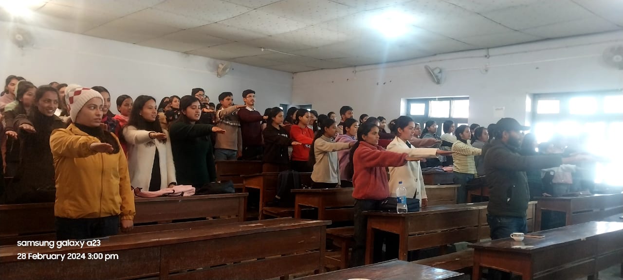 अल्मोड़ा-आज दिनांक 28 फरवरी 2024 को राष्ट्रीय विज्ञान दिवस के उपलक्ष्य में टाइगर ग्रुप छात्र संगठन द्वारा उत्तराखंड सरकार द्वारा स्थापित विज्ञान शिक्षा तकनीकी संस्थान UCOST (UTTARAKHAND STATE COUNSIL FOR SCIENCE & TECHNOLOGY) के सहयोग से वनस्पति विज्ञान विभाग में संगोष्ठी का आयोजन किया गया। जिसका विषय सतत जीवन उत्तराखंड में भावी पीढ़ियों के लिए जैव विविधता की रक्षा रहा।सैकड़ों विद्यार्थी संगोष्ठी में सम्मिलित हुए।कार्यक्रम में मुख्य अतिथि के रुप में विश्वविद्यालय के कुलपति सतपाल सिंह बिष्ट,मुख्य वक्ता के रूप में प्रोफ़ेसर अनिल यादव उपस्थित रहे।अध्यक्षता डॉ धनी आर्या और अध्यक्ष छात्र संघ राहुल सिंह धामी एवं संचालन टाइगर ग्रुप के संस्थापक आशीष जोशी द्वारा किया गया।बता दे कि 28 फरवरी को भारत में राष्ट्रीय विज्ञान दिवस मनाया जाता है क्योंकि इसी दिन भारत के महान वैज्ञानिक डॉक्टर सी वी रमन द्वारा रमन प्रभाव की खोज की गई थी। 1987 से भारत सरकार प्रत्येक वर्ष 28 फरवरी को राष्ट्रीय विज्ञान दिवस के रुप में मनाती है।कार्यक्रम का शुभारंभ अतिथि कुलपति डॉ सतपाल सिंह बिष्ट द्वारा सरस्वती माता के चित्र के सम्मुख दीप प्रज्वलित कर किया गया और उसके बाद सतत जीवन उत्तराखंड में जैव विविधता की रक्षा विषय पर व्याख्यान दिया गया।मुख्य वक्ता डॉ अनिल यादव द्वारा विस्तृत रूप से विषय पर चर्चा की गई और तत्पश्चात विभाग अध्यक्ष डॉ धनी आर्य द्वारा विषय पर अपने विचार रखे गए। कार्यक्रम की समाप्ति पर डॉक्टर मंजू लता जोशी द्वारा उपस्थित छात्र समुदाय एवं शिक्षकों को उत्तराखंड में जैव विविधता को बचाने के लिए शपथ दिलाई गई।आशीष जोशी के नेतृत्व में सारा कार्यक्रम आयोजित हुआ। जबरदस्त संख्या में छात्र समुदाय संगोष्ठी में पहुंचा तथा वक्ताओं के उद्बोधन सुने तथा संकल्प लिया गया कि हम जैव विविधता को बचाने के लिए सभी को प्रेरित करेंगे।कार्यक्रम में जयप्रकाश पांडे,मनोज बिष्ट,मोहित बिष्ट,कंचन बिष्ट, लोकेश लोहनी, रिया, संतोष धामी, कविता, निशा गड़िया, सीता कन्याल, संगीता गड़िया, संजना राठौर, पूजा जोशी, भावनी पांडे, तनुजा पोखरिया, किरण विश्वकर्मा, दीक्षा साह, आरती मनराल, भावना फर्सवान, योगिता कैड़ा, दीपिका मिश्रा, किरण बिष्ट आदि समस्त लोग मौजूद थे।