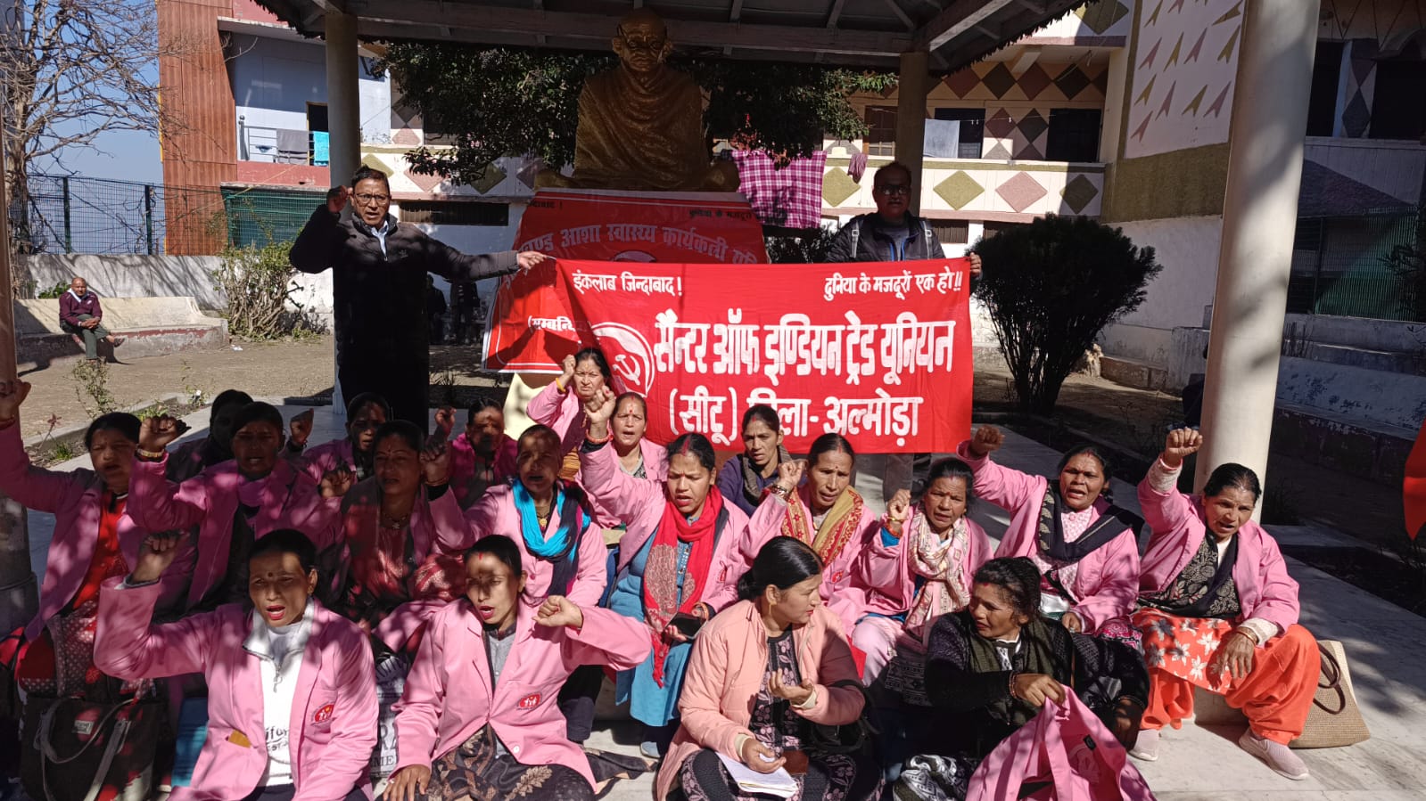 अल्मोड़ा-दिनांक 12 फरवरी 2026 को स्थानीय चौहान पाटा अल्मोड़ा में केंद्रीय ट्रेड यूनियन के आह्वान पर देशव्यापी हड़ताल के अवसर पर एक सभा /प्रदर्शन का आयोजन किया गया जिसमें केंद्र सरकार की जनविरोधी,मजदूर,महिला विरोधी सांप्रदायिक कॉर्पोरेट परस्त नीतियों के खिलाफ नारेबाजी की गई तथा चार काली श्रम संहिताओं को निरस्त करने के लिए मजदूर एवं कर्मचारियों ने अपनी मांग रखी। साथ ही ग्रामीण क्षेत्र से आए मजदूर एवं कर्मचारियों ने कहा कि मनरेगा कानून को पुनः बहाल किया जाए और मनरेगा में किए गए बदलाव को तत्काल प्रभाव से निरस्त किया जाए। किसान सभा के लोगो ने कहा कि बिजली विधेयक को तत्काल प्रभाव से वापस लिया जाए तथा खाद्य सब्सिडी को बढ़ाया जाए।बीएसएनल से आए कार्मिकों ने कहा कि अल्मोड़ा में बीएसएनएल में कार्यरत कर्मचारियों की स्थिति बत से बत्तर है।पिछले 10 महीने से उन्हें किसी प्रकार का कोई वेतन नहीं दिया जा रहा है जिससे उक्त कर्मचारियो में काफी रोष है।हड़ताल पर बोलते हुए अन्य संगठनों से आए लोगों ने कहा कि केंद्र के सरकार देश की अस्मिता और संप्रभूता को तार तार कर रही है।अमेरिका के साथ की गई डील देश के मजदूर एवं कर्मचारी वर्ग पर सीधे हमला है।वक्ताओं ने कहा कि उक्त डील का असर कर्मचारी एवं किसान वर्ग पर पड़ेगा।देश का किसान जो कि पहले ही बहुत दिक्कत से अपना भरण पोषण कर रहा है खुले बाजार के कारण तथा अमेरिका को 0% प्रतिशत टैरिफ को भारत में खुली छूट देने के कारण भारत का कपास किसान, सोयाबीन किसान एवं डेयरी उत्पादों से जुड़े हुऐ किसानो की स्थिति बहुत ही दयनीय हो जाएगी।प्रदर्शन के बाद पूरे शहर में 4 श्रम संहिताओं को वापस लेने,मजदूरों के हकों को बहाल करने और मोदी और ट्रंप सरकार के खिलाफ नारेबाजी करते हुए जुलूस निकाला गया। धरना प्रदर्शन में सीटू के जिला सचिव आरपी जोशी,महिला समिति की सुनीता पांडे, सरस्वती,जनवादी नौजवान सभा से युसूफ तिवारी,योगेश कुमार,आशा वर्कर्स से विजयलक्ष्मी,भगवती आर्य, ममता भट्ट,नीमा जोशी,किरण शाह,देवकी बिष्ट,आयशा अंशी, सरोजिनी,ममता तिवारी,पूजा बगड़वाल,आशा लटवाल, विमला रावत,हेमा नगरकोटी,तारा चौहान,तुलसी भट्ट,पीटीसी कर्मचारियों से जीवन डांगी,कपिल सिंह,उमेश चंद्र,हीरा सिंह,नंदन सिंह,मंगल दत्त भट्ट,रतन सिंह,कुंवर सिंह, शंकर लाल,पवन सिंह,दीवान सिंह,प्रताप सिंह,बाला दत्त पांडे आदि मौजूद रहे। भोजन माता में देवकी,गंगा,हेमा अधिकारी, प्रेम जड़ौत,आनंदी गुप्ता,बीएसएनल से डी सी भट्ट रहे।सभा का संचालन युसूफ तिवारी ने किया।