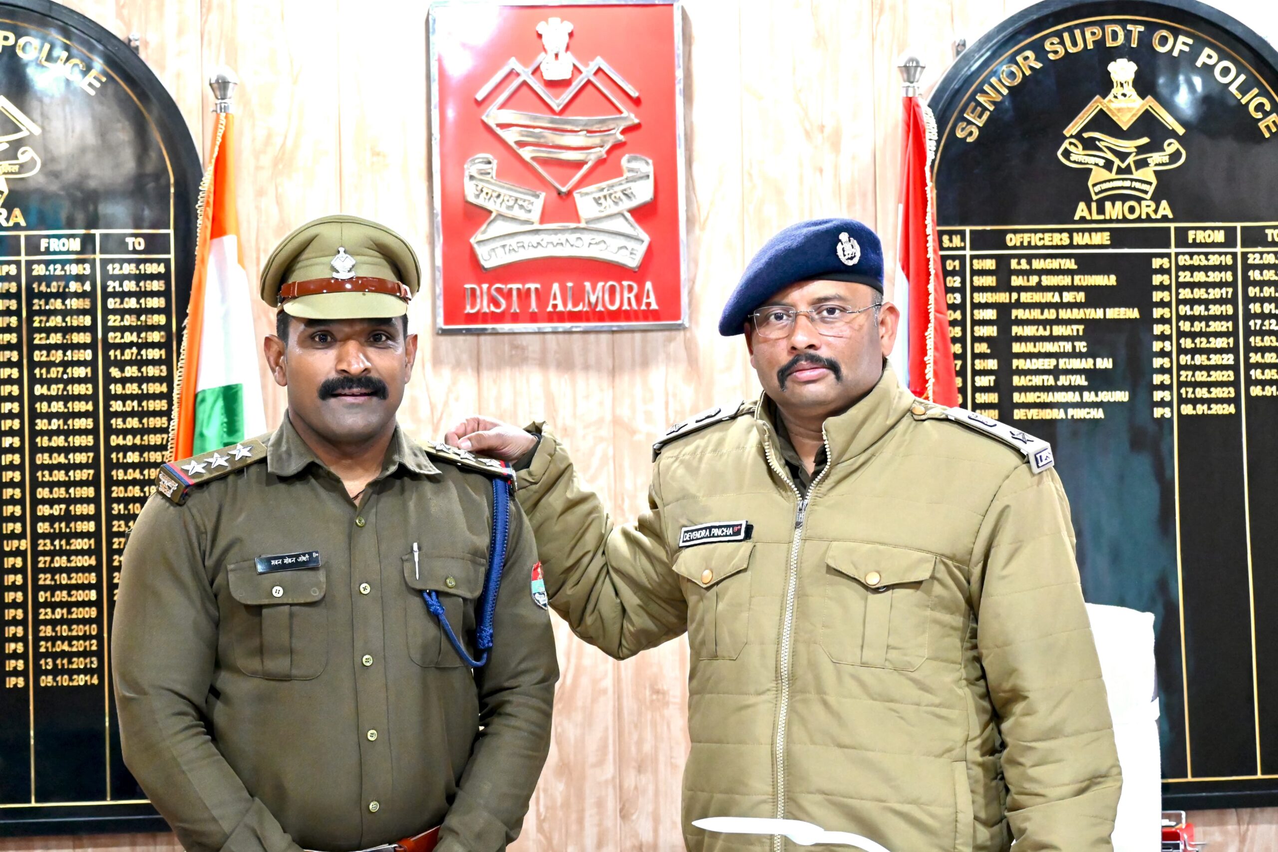 अल्मोड़ा-पुलिस मुख्यालय देहरादून द्वारा जारी पदोन्नति आदेश पर वर्ष 2008/2009 बैच के उप निरीक्षक मदन मोहन जोशी को निरीक्षक पद पर पदोन्नति प्रदान की गयी हैं। वर्तमान में एसएसपी अल्मोड़ा के पीआरओ के पद पर कार्यरत हैं।आज दिनांक 28.02.2025 को देवेन्द्र पींचा एसएसपी अल्मोड़ा द्वारा उप निरीक्षक से निरीक्षक पद पर पदोन्नत हुए मदन मोहन जोशी को निरीक्षक पद के अलंकरण से अलंकृत कर बधाई देते हुए अग्रिम दायित्वों व उज्जवल भविष्य के लिए शुभकामनाएं दी गई।