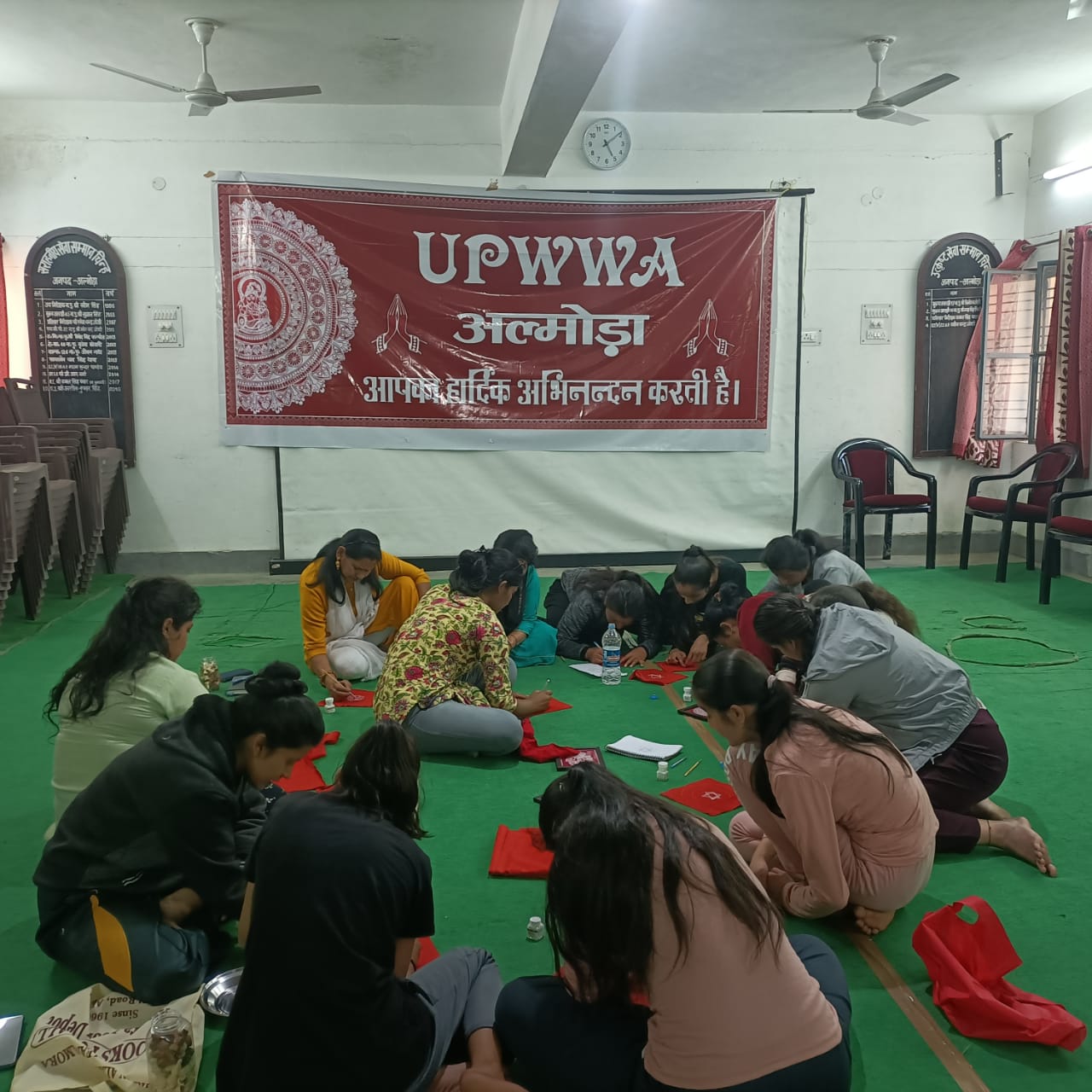 अल्मोड़ा-डॉ० अलकनन्दा अशोक अध्यक्ष उत्तराखंड पुलिस वाइव्स वेलफेयर एसोसिएशन की पहल पर सुश्री ओशीन जोशी पुलिस उपाधीक्षक ऑपरेशन के नेतृत्व में श्रीमती बरखा कन्याल नोडल अधिकारी उपवा द्वारा पुलिस परिवार की महिलाओं एवं बालिकाओं को लोक चित्रकला ऐपण को जीवंत रखने के लिये सात दिवसीय ऐपण कला का प्रशिक्षण पुलिस परिवार की बालिका कु० मीनाक्षी आगरी द्वारा दिया जा रहा है।ऐपण प्रशिक्षण में शुभ अवसरों के आयोजन में प्रयुक्त की जाने वाली ऐपण पद्धति में विभिन्न चौकी,बुक मार्क,दुपट्टे, ब्लैसिंग फ्लैग,पूजा थाल सहित विभिन्न ऐपणों का प्रशिक्षण दिया जा रहा है।इस सराहनीय पहल से महिलाएं एवं बालिकाएं आत्मनिर्भरता की ओर अग्रसर होगी।महिलाओं/बालिकाओं द्वारा उत्साहित हो कर प्रशिक्षण प्राप्त किया जा रहा है।