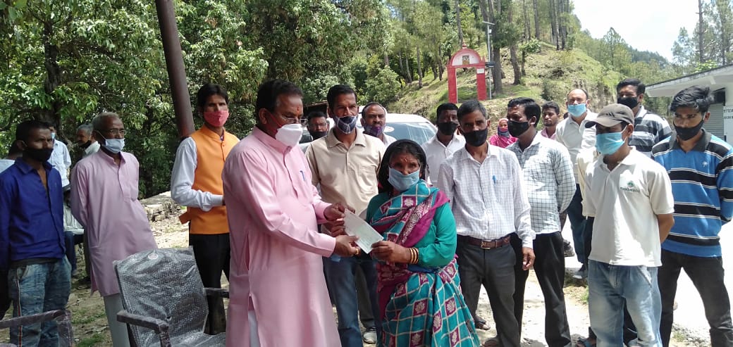 अल्मोड़ा-विधानसभा उपाध्यक्ष रघुनाथ सिंह चौहान द्वारा आज अपने विधानसभा क्षेत्र अल्मोड़ा के विकासखंड भैंसियाछाना के ग्राम पंचायत फुलाडी,सिरमोली,चनौली, कुमोली,पांडेतोली,छानी,अलई,बामन तिलाड़ी,खास तिलाड़ी एवं कुंज रतोड़ा गांव में जाकर जगह जगह पर मास्क, सैनिटाइजर,साबुन इत्यादि सामग्री का वितरण किया गया।गरीब निर्धन परिवार की महिलाओं को अपनी विधानसभा निधि से 21 चेक लगभग ₹42000 धनराशि के प्रदान किए। ग्रामीणों द्वारा जगह-जगह पर पेयजल मोटर मार्ग से संबंधित समस्याओं को रखा गया जिस हेतु विधानसभा उपाध्यक्ष द्वारा विभागीय अधिकारियों से वार्ता कर तत्काल प्रभाव से आवश्यक कार्यवाही करने के निर्देश दिए।कुछ जगहों पर राशन कार्ड ऑनलाइन न हो पाने की शिकायत भी मिली खाद्यान्न अधिकारी पेटसाल एवं खंड विकास के अधिकारियों से वार्ता कर तत्काल विकासखंड भैंसियाछाना के गांवों में कैंप लगाकर लोगों के राशन कार्डों को ऑनलाइन कराते हुए खाद्यान्न उपलब्ध कराने हेतु निर्देशित किया।क्षेत्र भ्रमण के दौरान ही दूरभाष से मिली सूचना के अनुसार नेता प्रतिपक्ष श्रीमती इंदिरा हिरदेश का हृदय गति रुक जाने के कारण देहावसान का उन्हें समाचार मिला जिससे उनका मन दुखी एवं व्यथित हो गया।उन्होंने कहा कि श्रीमती इंदिरा द्वारा सदन में हमेशा दलगत राजनीति से ऊपर उठकर प्रदेश के महत्वपूर्ण बिंदुओं पर हमेशा मेरा मार्गदर्शन किया।भगवान इस दुख की घड़ी में उनके परिवार को इस महान कष्ट को सहन करने की शक्ति प्रदान करें।इस अवसर पर भारतीय जनता पार्टी मंडल महामंत्री भूपेंद्र पूना,व्यापार मंडल अध्यक्ष बाड़ेछीना शिवराज सुप्याल, क्षेत्र पंचायत सदस्य संजय तिलारा, प्रधान प्रतिनिधि गंगादत पांडे,भोपाल सिंह,उमेश सिंह,दान सिंह क्षेत्र पंचायत सदस्य दीपक पांडे,ग्राम प्रधान राजेंद्र सिंह बिष्ट,शेखर सुयाल,मोहन सिंह, ग्राम प्रधान हन्सा दत्त भट्ट,भारतीय जनता पार्टी अनुसूचित मोर्चा के जिला उपाध्यक्ष बलदेव आर्य,सोबन राम, हेमंत तिलारा,ग्राम प्रधान गोपाल पैनवाल,ग्राम प्रधान पूरन सिंह बोरा, भाजपा कार्यकर्ता के सी सनवाल, शंकर सुप्याल,वरिष्ठ भाजपा कार्यकर्ता मोती सिंह,पूर्व ग्राम प्रधान उपेंद्र देवडी, सहित सैकड़ों की संख्या में भाजपा कार्यकर्ता,महिलाएं,बुजुर्गजन, नौजवान साथी उपस्थित रहे।