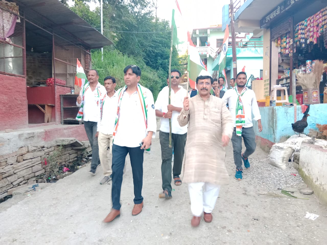 अल्मोड़ा-दिनांक 13 अगस्त शनिवार को अल्मोड़ा विधायक मनोज तिवारी ने कांग्रेसजनों के साथ विकासखंड हवालबाग के ग्राम ज्योली एवं हवालबाग में पदयात्रा की।उनके साथ अल्मोड़ा से प्रदेश कांग्रेस कमेटी सदस्य भूपेन्द्र सिंह भोज,ध्वज वंदन प्रभारी संजय दुर्गापाल,क्षेत्र पंचायत सदस्य पारितोष जोशी,हवालबाग ब्लाक अध्यक्ष राजेन्द्र सिंह बोरा उपस्थित रहे।देश भक्ति के नारो से सराबोर यह यात्रा विशेष आनंद की अनुभूति करा रही थी।पदयात्रा को संबोधित करते हुए विधायक मनोज तिवारी ने कहा कि आज देश उन अनेक वीर सपूतों को याद कर रहा है जिन्होंने आजादी के लिए अपना सर्वस्व बलिदान कर दिया। उन्होंने कहा कि 100 सालों से भी अधिक अंग्रेजों से आजादी के खिलाफ लड़ाई लड़ी गई जिसमें युवाओं ने अपने प्राणों की आहुति हंसते-हंसते दे दी।उन्होंने कहा कि इस साल भारत की आजादी की 75वीं वर्षगांठ होने से अगस्त के महीने का महत्व ज्यादा हो गया है।श्री तिवारी ने कहा कि इस तिरंगा पदयात्रा का मकसद देश में एकता,अखण्डता की भावना पैदा करना है।कांग्रेस के नेताओं ने पूर्व में देश की एकता एवं अखण्डता के लिए अपने प्राण तक न्यौछावर कर दिए।विधायक तिवारी ने कहा कि जिस तरह आजादी की लड़ाई के लिए अंग्रेजों भारत छोड़ो का नारा दिया गया था,उसी प्रकार आज एक बार फिर देश को जरूरत है भारत जोड़ने की।क्योंकि धर्म और मजहब की राजनीति देश को तोड़ने का काम कर रही है। इसलिए कांग्रेस पूरे प्रदेश में भारत जोड़ो तिरंगा यात्रा निकाल रही है।उन्होंने कहा कि अब वक्त आ गया है कि देश को तोड़ने वाली साजिशों को नाकाम करना होगा।लिहाजा कांग्रेस केंद्र और राज्य सरकार की नाकामियों को उजागर करते हुए भारत जोड़ो तिरंगा यात्रा निकाल रही है।तिरंगा पदयात्रा में मलेरा से जीवन सिंह,रवीन्द्र सिंह,महिपाल सिंह,पिल्खा से पुष्कर सिंह,खनून से मोहन सिंह,पाखुड़ा से रवीन्द्र सिंह,महेन्द्र सिंह,ज्योली से पूर्व प्रधान भूपाल राम,नन्दन राम,पूरन राम,मनोज राम,बलवन्त राम,हवालबाग से विक्रम सिंह,दिनेश लाल साह,पीयूष नेगी,अर्जुन नेगी,देवेन्द्र बिष्ट,राजू नेगी,उडियारी से नरेन्द्र कुमार,सुनील कुमार,विनय कुमार,बन्टी शामिल रहे।