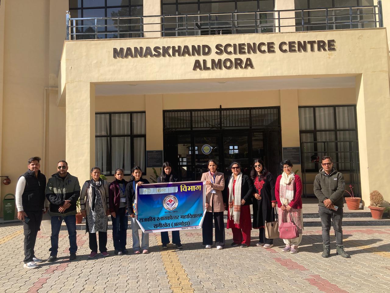 अल्मोड़ा-दिनांक 21.11. 2025 को राजकीय स्नातकोत्तर महाविद्यालय रानीखेत के जंतु विज्ञान विभाग के एम.एस.सी. प्रथम सेमेस्टर के विद्यार्थियों ने गोविन्द बल्लभ पंत राष्ट्रीय हिमालयी पर्यावरण एवं सतत विकास संस्थान कोसी कटारमल तथा मानसखंड विज्ञान केंद्र का भ्रमण किया।गोविन्द बल्लभ पंत राष्ट्रीय हिमालयी पर्यावरण एवं सतत विकास संस्थान में विद्यार्थियों ने विभिन्न प्रयोगशाला,उनकी कार्य पद्धति, जैव विविधता संरक्षण, हाइड्रोपॉनिक्स एवं तितलियों के संरक्षण एवं संवर्धन को बारीकी से समझा।संस्थान के निदेशक डा आई डी भट्ट ने बताया कि एसएसजे विश्वविद्यालय के साथ संस्थान का एमओयू है अतः महाविद्यालय के विद्यार्थी संस्थान में विभिन्न वैज्ञानिक शोध कार्य कर सकते हैं।मानसखंड विज्ञान केंद्र में डीएनए आयुर्वेद,जलवायु परिवर्तन,भौतिकी के सिद्धांत एवं प्रयोग तथा तरामंडल इत्यादि विषयों को सरल तरीके से समझा।भ्रमण में विद्यार्थियों के साथ डा दीपा पाण्डेय,डॉ प्रमोद जोशी,डा अपूर्वा जोशी, डा निहारिका बिष्ट,पंकज गोस्वामी तथा श्रीमती पुष्पा शर्मा भी उपस्थित रहे।