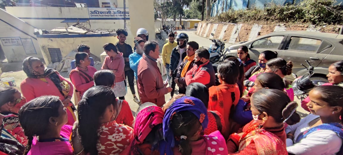 अल्मोड़ा-आज दिनांक 20 दिसंबर 2021 को हवालबाग ब्लाक के ग्राम सभा घनेली की आक्रोशित महिलाओं द्वारा धर्मनिरपेक्ष युवा मंच संयोजक विनय किरौला ने उच्च अधिकारियों का घेराव किया।घनेली में पेयजल की कोई विभागीय योजना ना होने से ग्रामीणों को पेयजल की अंत्यंत समस्या का सामना करना पड़ रहा है।अधिशासी अभियंता जल निगम ने ग्रामीणों को आश्वसत करते हुए कहा कि शीघ्र ही विभागीय कनिष्ठ अभियंता द्वारा गांव में पेयजल स्त्रोतों का निरीक्षण कर अस्थायी योजना तत्काल रुप से बनायी जायेगी।जिससे ग्रामीणों को पेयजल की समस्या का सामना ना करना पड़े।साथ ही राजकीय प्राथमिक विधालय घनेली के भवन की खस्ताहाल हालत पर जिला शिक्षा अधिकारी प्रारंभिक ने आश्वासन दिया कि एक सप्ताह के भीतर ही स्कूल के जीर्णोद्धार का काम प्रारम्भ हो जायेगा।इसके लिए कार्यदायी संस्था को शीघ्र आदेशित किया जा रहा है।घिराव करने वालों में धर्मनिरपेक्ष युवा मंच संयोजक विनय किरौला, मीडिया समन्वयक मयंक पंत,हरीश बिष्ट,पंकज रौतेला,मीरा रॉयल,नरेंद्र रॉयल,हीरा देवी,प्रेमा देवी,हेमा देवी,पुष्पा देवी,पुष्पा भट्ट,कमला देवी,तुलसी रॉयल,भगवती देवी,दुर्गा देवी,उमा देवी,जानकी देवी,बिमला देवी,तारा देवी,सरस्वती देवी,गीता देवी,नीमा देवी,राहुल,जगदीश लाल,बद्री दत्त भट्ट,भास्कर, समेत दर्जनों महिलाओं ने घेराव किया।