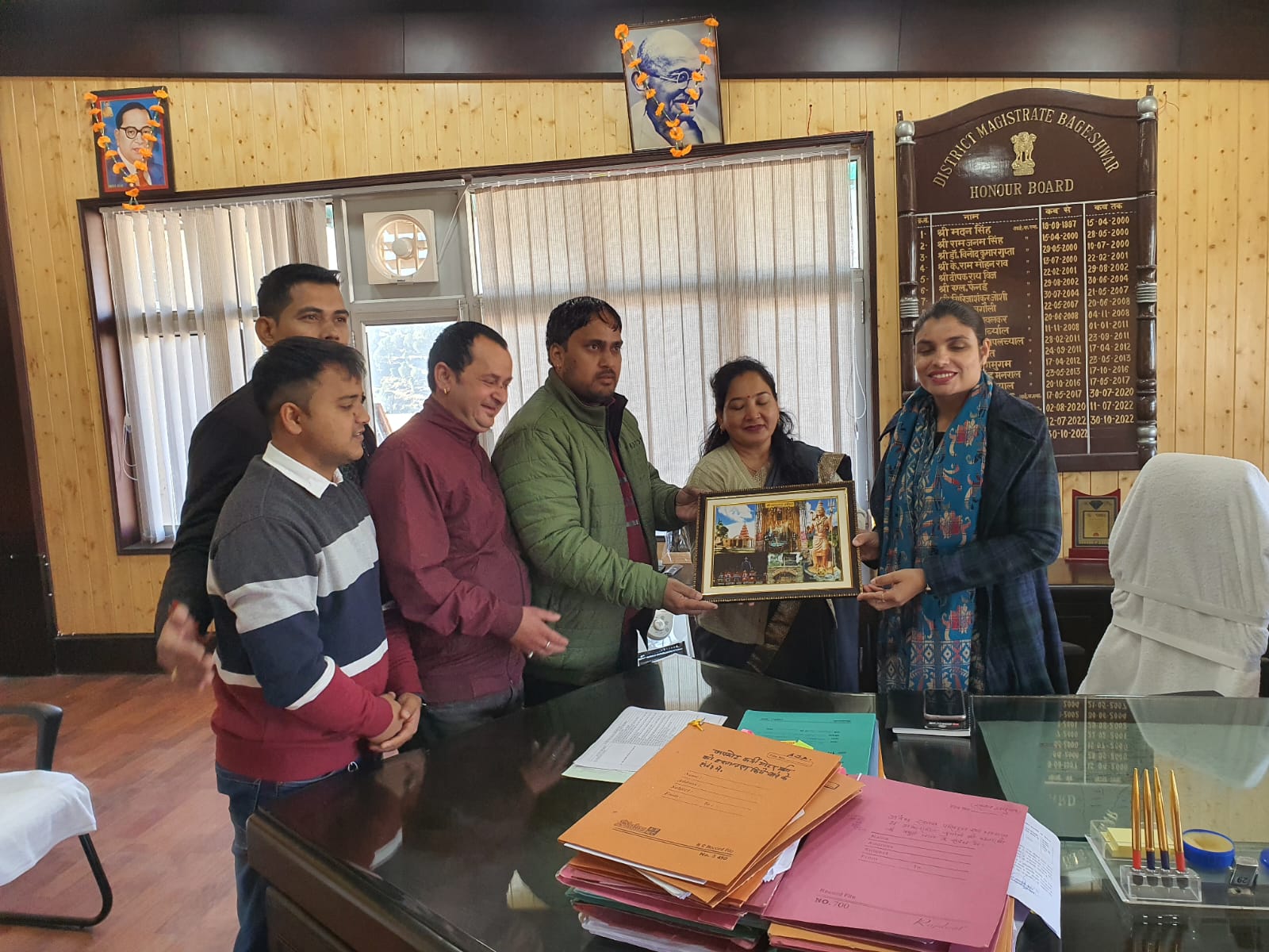 बागेश्वर-आज नगर व्यापार संघ बागेश्वर द्वारा जिलाधिकारी का बाबा बागनाथ की पेंटिंग भेंट कर स्वागत किया गया।कवि जोशी नगर अध्यक्ष व्यापार संघ बागेश्वर द्वारा सरयू पुल गोमती पुल की जर्जर स्थिति जल्द सही करवाने,नगर में जल्द पार्किंग बनवाने,गोमती पुल से नदीगांव तक नदी किनारे बनने वाली रोड का निर्माण जल्द पूर्ण करवाने,गोमती पुल से विकास भवन पुल तक नदी किनारे भी जल्द सड़क का निर्माण करवाने की अपील की।जिसमें जिलाधिकारी द्वारा जल्द ही कार्यवाही करने का आश्वासन दिया गया है।कार्यक्रम में कवि जोशी अध्यक्ष नगर व्यापार संघ बागेश्वर,मनीष जखवाल निवर्तमान प्रदेश संगठन मंत्री,अनिल कार्की निवर्तमान जिला महामंत्री,हेम जोशी उपाध्यक्ष,श्रीमती इंदु चौधरी उपाध्यक्ष,पुष्कर किरमोलिया सचिव,राहुल साह सह सचिव मौजूद रहे।