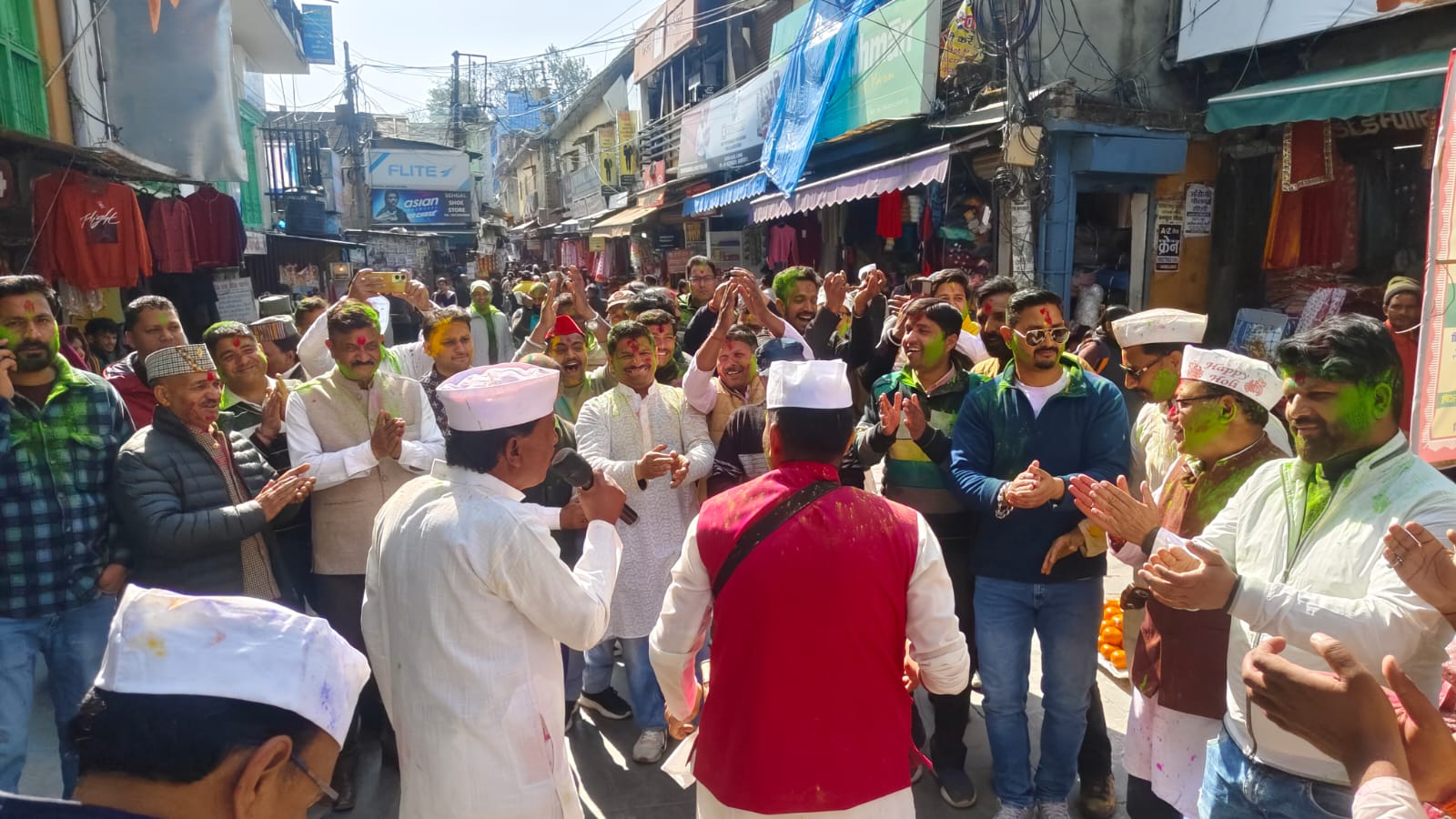 अल्मोड़ा-प्रांतीय उद्योग व्यापार प्रतिनिधि मंडल के तत्वाधान में विगत वर्षों की भांति इस वर्ष भी पूरे बाजार क्षेत्र में सिद्धि नौला पलटन बाजार से नंदा देवी बाजार तक होली की टोली का भव्य आयोजन किया गया। कार्यक्रम में नगर क्षेत्र के व्यापारी,जनप्रतिनिधि एवं गणमान्य नागरिक बड़ी संख्या में उपस्थित रहे।पूरे बाजार क्षेत्र में होली के रंगों और पारंपरिक होली गीतों की धूम रही।लोकगायक गोपाल चम्याल एवं उनकी टीम ने विभिन्न स्थानों पर पहाड़ी होली का सुमधुर गायन कर वातावरण को भक्तिमय और उल्लासपूर्ण बना दिया।जिला व्यापार मंडल के जिलाध्यक्ष सुशील साह ने बताया कि वर्ष 2020 से प्रांतीय उद्योग व्यापार मंडल द्वारा इस आयोजन को निरंतर किया जा रहा है और भविष्य में भी इसे और अधिक भव्य रूप से आयोजित किया जाएगा। उन्होंने कहा कि ऐसे आयोजनों से व्यापारियों में एकता एवं सामाजिक समरसता को बढ़ावा मिलता है।व्यापार मंडल परिवार ने होली की टोली में उपस्थित सभी होलियारों का आभार व्यक्त किया।कार्यक्रम में जिलाध्यक्ष सुशील साह,जिला महामंत्री भैरव गोस्वामी,संयुक्त महामंत्री दिनेश मठपाल,प्रदेश संगठन मंत्री मनीष जोशी,नगर सचिव वकुल साह,नगर उपाध्यक्ष मुकुल जोशी,नगर सहसचिव अश्विन नेगी,अजीत कार्की,पूरन रौतेला,गोविंद पिलख्वाल,तारु जोशी,कैलाश गुरुरानी, विनोद वैष्णव,दर्शन रावत,पार्षद वैभव पांडे,गुंजन चम्याल,दीपक कुमार,कमलेश मेर,ललित मिश्रा,दिनेश पांडे, नरेंद्र कुमार,विक्की,राजेंद्र प्रसाद,कमल साह,अमन नज़्जोंन,प्रतेश पांडे,आशु गोस्वामी,परितोष जोशी,प्रकाश रावत,अभिषेक रावत,नीरज सांगा,कन्नू बिष्ट,उज्जवल जोशी, मनोज वर्मा,रोहित मेर,प्रेम बिष्ट, गोपाल चम्याल,दयानन्द, सलमान अंसारी,मुकुल कुमार, रवि चौहान,भानु बिष्ट,त्रिलोक बिष्ट,सचिन,गौरव भंडारी, अनिल बिष्ट,सागर,मोनू कुमार सहित अनेक व्यापारी एवं जनप्रतिनिधि उपस्थित रहे।