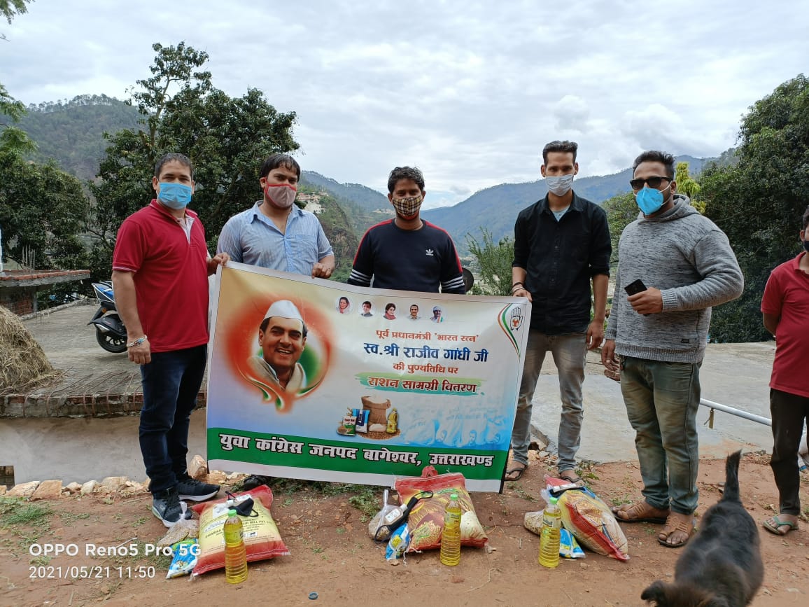बागेश्वर-आज कवि जोशी जिलाध्यक्ष युवा कांग्रेस बागेश्वर के नेतृत्व में पूर्व प्रधानमंत्री राजीव गांधी की पुण्यतिथि को कोरोना महामारी को समर्पित करते हुए इसे सद्भावना दिवस के रूप मनाया गया।जिसके तहत आज 21 मई 2020 को होटल ओमकार कपकोट के मालिक नीलकमल जोशी के सहयोग से नगर क्षेत्र में कफलखेत,घटबगरवार्ड, नुमाईशखेत, में 11 कोरोना पॉजिटिव जरूरतमंद परिवारों को राशन किट,मास्क, सैनिटाइजर,कोरोना किट का वितरण किया गया।जिस कार्यक्रम में कवि जोशी जिलाध्यक्ष युवा कांग्रेस बागेश्वर,ईश्वर पांडेय जिला उपाध्यक्ष, अंकुर उपाध्याय जिला प्रवक्ता,सुनील पाण्डेय जिला कोषाध्यक्ष,रिजवान खान जिला वरिष्ठ महासचिव,पुष्कर पांडेय,उमेश मनराल,जीवन पांडेय,राकेश भट्ट मौजूद रहे।