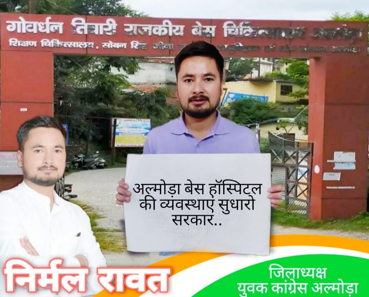 अल्मोड़ा-युवा कांग्रेस जिला अध्यक्ष निर्मल रावत के नेतृत्व में आज युवा कांग्रेस के जिले भर के कार्यकर्ताओं ने अल्मोड़ा बेस अस्पताल की व्यवस्थाओं में सुधार करने की मांगों को लेकर सांकेतिक धरना प्रदर्शन किया।युवा कांग्रेस जिला अध्यक्ष निर्मल रावत ने कहा कि बेस अस्पताल जिले का एक प्रमुख अस्पताल है,आए दिन बेस अस्पताल में कई प्रकार की शिकायतें विभिन्न माध्यमों से सामाजिक परिदृश्य में आ रही है,कई साधनों एवं उपकरणों के अभाव में वहां भर्ती मरीजों को दिक्कतें आ रही हैं जिस ओर शासन प्रशासन कोई ध्यान नहीं दे रहा है,ऐसे में मरीजों को असुविधा का सामना करना पड़ रहा है।जिला अध्यक्ष निर्मल रावत ने कहा कि ऐसे कठिन कोरोना महामारी के दौर में अस्पतालों बुनियादी सुविधाओं पर ध्यान दिए जाने की आवश्यकता है, जिससे मरीजों का मनोबल न टूटे।रावत ने मरीजों के घरवालों को उनके मरीज की नियमित जानकारी प्रदान करने के लिए एक हेल्पलाइन नंबर की शुरुवात की आवश्यकता पर बल दिया,जिस पर मरीज के परिजन उसके स्वास्थ्य की सूचना प्रदान कर सकें।बेस की सुविधाएं सुधारे सरकार मुहिम में जिला अध्यक्ष युवा कांग्रेस निर्मल रावत के साथ,जिला महासचिव संजीव कर्म्याल,जिला महासचिव सुनील सिंह,जिला महासचिव कुलदीप भंडारी,विधानसभा अध्यक्ष अल्मोड़ा धीरज गैलाकोटी,विधानसभा अध्यक्ष जागेश्वर ललित सतवाल,विधानसभा अध्यक्ष सोमेश्वर दिनेश नेगी,विधानसभा अध्यक्ष द्वाराहाट विनोद कुमार,विधानसभा महासचिव द्वाराहाट हेमा कठायत,ब्लॉक अध्यक्ष ताकुला आशीष कुमार,ब्लॉक अध्यक्ष जैंती गोपाल माहरा,ब्लॉक अध्यक्ष हवालबाग विक्रम नेगी,ब्लाक अध्यक्ष धौलादेवी पवन गैड़ा,द्वाराहाट भारत भूषण,गिरीश,भानु सिंह बिष्ट आदि युवा कांग्रेस कार्यकर्ताओं ने समर्थन दिया।