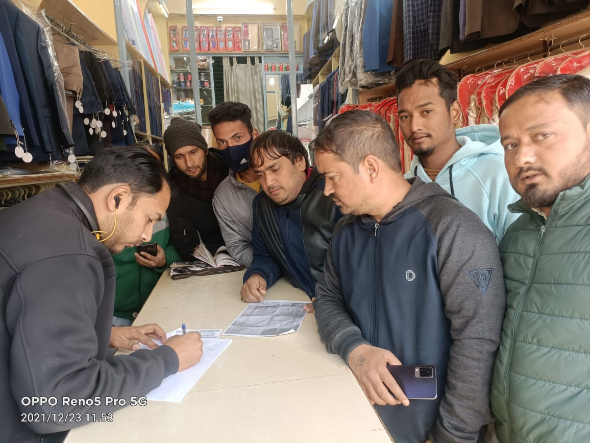 बागेश्वर-आज कवि जोशी जिलाध्यक्ष युवा कांग्रेस बागेश्वर के नेतृत्व में बागेश्वर नगर पालिका के अंदर आने वाले व्यापारियों पर यूजर चार्ज लगाने के विरोध में व यूजर चार्ज को वापस लेने की माँग के लिए यूथ कांंग्रेस ने सभी नगर के व्यापारियों का हस्ताक्षर अभियान चलाया।कवि जोशी ने बताया कि यूजर चार्ज वापस लेने के अभियान में लगभग 300 व्यापारियों ने अभी तक हस्ताक्षर कर दिए है।इस अवसर पर कवि जोशी जिलाध्यक्ष ने कहा कि आज शाम तक सभी व्यापारियों से हस्ताक्षर अभियान में समर्थन लेने के बाद वो कुमाऊँ कमिश्नर उत्तराखंड के नाम से प्रेषित ज्ञापन जिलाधिकारी को देंगे जिसमें सभी व्यापारियों के यूजर चार्ज वापस लेने की हस्ताक्षर अभियान की प्रतिलिपि भी लगाई जाएगी।उन्होंने कहा कि जल्द ही यूजर चार्ज को प्रशासन वापस नही लेता है तो युवा कांग्रेस बागेश्वर सभी व्यापारियों के साथ मिल कर उग्र जन आंदोलन करने के लिए वाध्य होगी।जिसकी पूरी जिम्मेदारी शासन व जिला प्रशासन की होगी।कार्यक्रम में कवि जोशी जिलाध्यक्ष युवा कांग्रेस बागेश्वर,अंकुर उपाध्याय प्रदेश प्रवक्ता,सुनीता टम्टा पूर्व कनिष्ठ प्रमुख बागेश्वर,सुनील पाण्डेय जिला कोषाध्यक्ष,रिजवान खान जिला उपाध्यक्ष,गोकुल परिहार एन एस यू आई जिलाध्यक्ष,गीतांजली जिला उपाध्यक्ष,विशाल रावत जिला सचिव,संस्कार खैर नगर अध्यक्ष सोशल मीडिया,गोविन्द चन्दोला पूर्व छात्र संघ उपाध्यक्ष,प्रेम पाठक,नागेंद्र मनवाल जिला सचिव,फिरोज खान जिला सचिव,अजय पाण्डेय ब्लॉक अध्यक्ष सोशल मीडिया,प्रकाश वाचमी,राजेन्द्र पाण्डेय, निक्कू,गौरव,अज्जू,नवीन परिहार,आदि मौजूद थे।