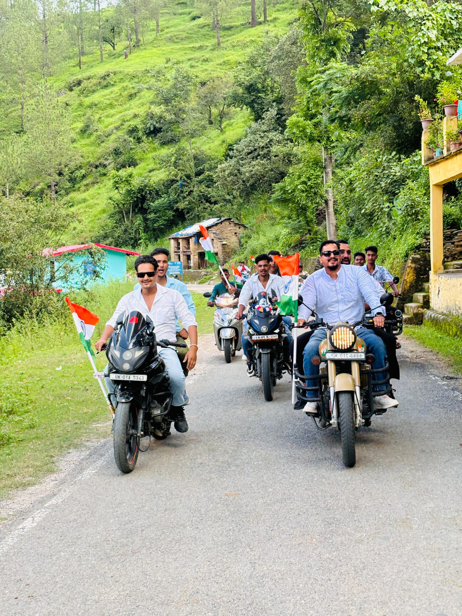 अल्मोड़ा-आज आजादी की सालगिरह पर गुरुवार को युवा एकता मंच दौलाघट गोविंदपुर-गेवापानी द्वारा बाइक तिरंगा रैली निकाली गई। इस दौरान शहीदों का नमन किया गया। आजादी की सालगिरह के मौके पर हर घर तिरंगा अभियान चलाया जा रहा है।दौलाघट बाजार से शुरू हुई बाइक तिरंगा यात्रा गोविंदपुर में जाकर संपन्न हुई। क्षेत्र पंचायत सदस्य राहुल खोलिया ने कहा कि यह कार्यक्रम उन अमर शहीदों की याद में किए जा रहे हैं जिन्होंने देश को आजादी दिलाने में अपना बलिदान दिया है। इन कार्यक्रमों के आयोजन का उद्देश्य बच्चों व आमजन में देश प्रेम व राष्ट्रीय चेतना को जागृत करना भी है।समाजसेवी जीवन सिंह तड़ागी ने आम जनमानस से अपील की है कि सभी अपने अपने घरों पर तिरंगा लगाकर इस अभियान में सहभागी बनें और स्वतंत्रता दिवस के पर्व को धूमधाम से मनायें। इस अवसर पर पूर्व सैनिक गजेंद्र सिंह रावत ,प्रधान सिलानी रमेश सिंह बिष्ट,आनंद तड़ागी, प्रधान संजय कुमार जोगा डांगी,मुकेश बिष्ट,विजय भंडारी,मोहन गिरी,आयुष बिष्ट,शुभम डांगी,मनीष अधिकारी,चंदन बिष्ट,दीपक बोरा,पवन रावत,धीरज डांगी,अबरार अहमद,सुनील खोलिया,हैरी आदि अनेक युवा साथी मौजूद रहे।