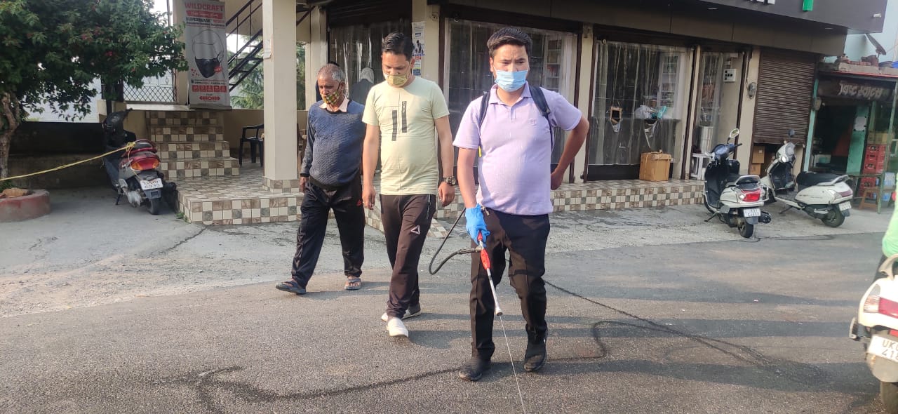 अल्मोड़ा-पिछले पांच दिनों से लगातार युवा कांंग्रेस जिलाध्यक्ष निर्मल रावत के नेतृत्व में क्षेत्र में सैनेटाईजेशन का कार्य कर रही है।इस बीच युवक कांग्रेस के कार्यकर्ताओं ने बेस अस्पताल से लगे दुकानों एवं आवासीय परिसर में सेनिटाइजेशन का कार्य किया।युवा कांग्रेस जिला अध्यक्ष निर्मल रावत के नेतृत्व में कार्यकर्ताओं ने बेस अस्पताल से लगी दुकानों और स्टाफ क्वार्टर्स में सेनिटाइजेशन का कार्य किया।इस अवसर पर श्री रावत ने बताया कि पूरे अभियान को स्थानीय नागरिकों द्वारा भी सराहा गया जिससे कार्यकर्ताओं का मनोबल बढ़ा है।श्री रावत ने शासन प्रशासन से मांग की कि बेस अस्पताल के पास लगी दुकानों और आवासीय परिसरों में नियमित रूप से सेनिटाइजेशन हो, क्योंकि उस क्षेत्र में कोविड अस्पताल भी है और ज्यादातर स्वास्थ्य कर्मचारी स्टाफ कालोनी और क्वाटर्स में रहते हैं।वहां नियमित सेनिटाइजेशन होने से उस क्षेत्र में संक्रमण से काफी हद तक बचा जा सकेगा।साथ ही यह लोगों को सुरक्षित करने का एक सराहनीय प्रयास होगा।जिला अध्यक्ष निर्मल रावत ने सेनिटाइजेशन के उपकरणों एवं साधनों की उपलब्धता के लिए जिला पंचायत अध्यक्षा श्रीमती उमा बिष्ट का आभार व्यक्त किया।