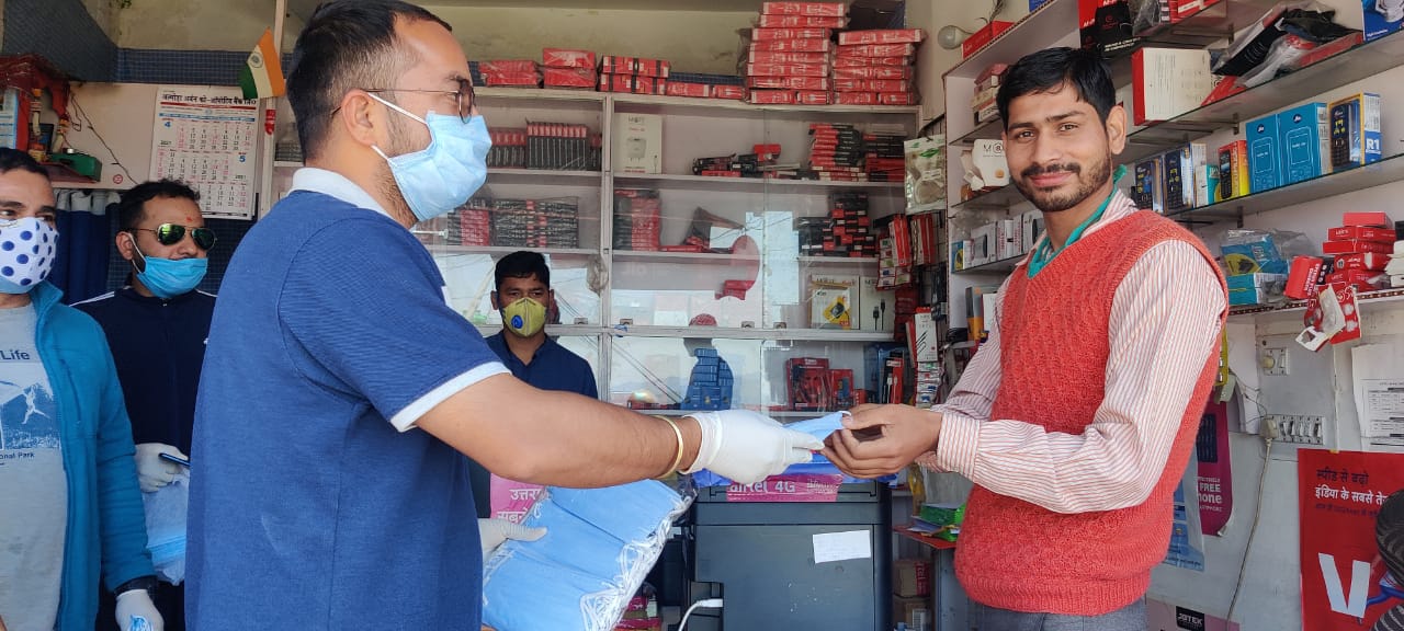 अल्मोड़ा-अल्मोड़ा विधानसभा में आज युवा कांग्रेस कार्यकर्ताओं ने विधानसभा अध्यक्ष धीरेंद्र सिंह गैलाकोटी के नेतृत्व में मास्क वितरित कर लोगों से कोरोना महामारी के प्रति गंभीर होने का आह्वान किया।युवा कांग्रेस कार्यकताओं ने चौघानपाटा से शिखर चौराहा होते हुए मुख्य बाजार में मास्क न पहले लोगों से मास्क पहनने की अपील कर खुद को कोरोना से सुरक्षित रहने को कहा।मास्क वितरण कर युवा कांग्रेस कार्यकर्ताओं ने प्रदेश व्यापी मास्क पहनो मुहिम को लेकर प्रदेश युवा कांग्रेस अध्यक्ष सुमित्तर भुल्लर और जिला अध्यक्ष निर्मल रावत द्वारा किए गए आह्वान पर आज प्रदेश और जिले भर में मास्क वितरित किए।मास्क वितरित करते हुए युवा कांग्रेस जिला महासचिव सुनील सिंह ने भी लोगों से कोरोना महामारी से बचने और अपने परिवारजनों को भी बचाने का आह्वान किया।उन्होंने कहा कि ये मुश्किल समय है जिसमें अनुशासित होकर ही इस महामारी से बचा जा सकता है।मास्क वितरण कार्यक्रम में अल्मोड़ा विधानसभा अध्यक्ष धीरेन्द्र सिंह गैलाकोटी,जिला महासचिव सुनील कठायत ,पूर्व सैनिक दिनेश देवडी,ग्राम प्रधान डोबा गोपाल तिवारी,किशोर कनवाल,सुरेश देवड़ी,सतीश पालनी आदि मौजूद रहे।