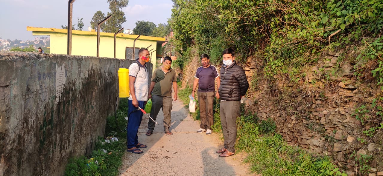 अल्मोड़ा-जिला पंचायत अध्यक्षा श्रीमती उमा बिष्ट के सहयोग से चल रहा युवक कांग्रेस का सेनिटाइजेशन अभियान गुरूवार लगातार तीसरे दिन भी जारी रहा।इस अवसर पर यूथ कांंग्रेस जिलाध्यक्ष निर्मल रावत ने कहा कि जिला पंचायत अध्यक्षा श्रीमती उमा बिष्ट के सहयोग से युवक कांग्रेस के कार्यकर्ता जगह जगह सेनिटाइजेशन का कार्य कर रहे हैं। विशेष कर उन जगहों को चुना जा रहा है,जहां शासन प्रशासन नहीं पहुंच पा रहा है।सैनेटाइजेशन सामग्री उपलब्ध करवाने के लिए जिला अध्यक्ष निर्मल रावत ने जिला पंचायत अध्यक्षा श्रीमती उमा बिष्ट का आभार व्यक्त किया है।उन्होंने कहा कि स्थानीय लोग भी लगातार अति संवेदनशील क्षेत्रों से युवक कांग्रेस को सेनिटाइजेशन के लिए आग्रह कर रहे हैं,जिस पर प्राथमिकता से कार्य किया जा रहा है।सैनेटाईजेशन में जिला अध्यक्ष निर्मल रावत,देवेंद्र कनवाल,महेंद्र कनवाल, संदीप जीना,नवल बिष्ट आदि ने सहयोग किया।
